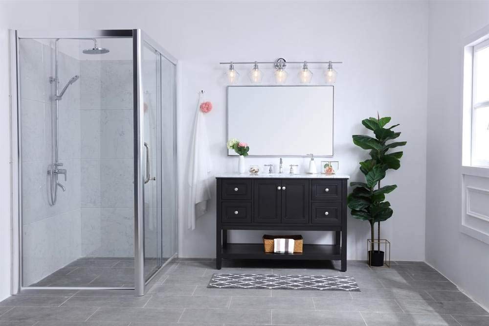 The Gene Collection of lights will be sure to have your guests admire your modern sense of style with the beautiful simplicity of its shape and form. The clean lines of the rhombus shaped shades create the juxtaposition of intricate simplicity achieving a style that has both form and function. This wall lamp can be oriented facing up or down but will always illuminate your room. Available in a brass chrome or black finish with either a clear or frosted rhombus glass shade it is the perfect wall lamp to enhance your bathroom foyer or hallways allowing you to always live in sleek contemporary style (light bulbs not included).Features:Materials: Iron metal glassFinish: Chrome clear glassClean sleek lines and a minimalistic design that is a versatile fit for any aestheticClear glass rhombus shaped shadeEasily mounted on wallLight bulb type: LED E26 (not included)Specifications:Product Dimensions: 10.2''H x 8''W x 47''DProduct Weight: 7.17 lbsHardware: Fixture Shape - Bath SconcesBulb Type: Bulb Shape - ST18 Bulb Socket - E26Number of Lights: 5Voltage: 110V - 125VWattage: Bulb Wattage - 40W Max Wattage - 200WHardware: 11'' of black & white wire includedAdjustability: Not Height Adjustable