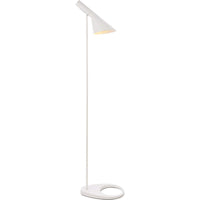 The Juniper Collection lamp will bring a pop into the room. The cone shape creates a striking, yet modest design that will complete a room. Available in black, brass, white, or red finish, this unique touch is an eye-catching piece. This product requires one E26 socket. Light bulbs not included.Features:Materials: Iron metalFinish: WhiteModern floor lamp with a sleek angular metal shadeComes with a ten foot long power cordIlluminated by 1 E26 base light bulb; bulbs are not includedA convenient foot switch located on the power cordLighting is compatiable with LED bulbsSpecifications:Product Dimensions: 49''H x 7.7''W x 13.7''DProduct Weight: 6 lbsHardware: Fixture Shape - Table LampBulb Type: Bulb Socket - E26Number of Lights: 1Voltage: 110V - 125VWattage: Bulb Wattage - 40W, Max Wattage - 40WHardware: 120'' of clear wire includedAdjustability: Height Adjustable
