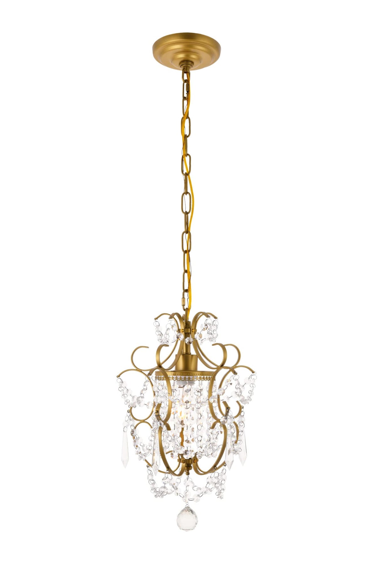 The Kirin pendant fixture is a dazzling bravura of visual whimsy, with swirling brass finish arms that dance around and through brilliant strands of beaded crystal chains cascading from a bright headpiece. The fanciful look also features crystal spears and a multifaceted crystal ball suspended below. This fixture packs a lot of appeal into a relatively compact space (11 inches in diameter) and is sure to add a distinctive accent to a dining room, bedroom, or foyer.Features:Materials: Iron metalFinish: BrassThe fanciful look also features crystal spears and a multifaceted crystal ball suspended below.1-light can accommodate either incandescent or LED lamp (not included)Lighting direction: upSpecifications:Product Dimensions: 16.5''H x 11.3''W x 11.3''DProduct Weight: 4.7 lbsHardware: Fixture Shape - PendantBulb Type: Bulb Socket - E26Number of Lights: 1Voltage: 120VWattage: Bulb Wattage - 40W, Max Wattage - 40WHardware: 79'' of gold wire includedAdjustability: Height AdjustableProduct Height: Hanging Height - 20.5'' Min to 77'' Max