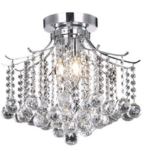 The Amelia collection sparkles with an extraordinary display of faceted crystal balls dangling from strands of octagon crystals, creating the illusion of a shimmering cascade of ornamentation pouring from a sleek metal canopy. These fixtures would be a commanding visual presence in any room, and will fit comfortably in smaller spaces. FeaturesThe fixture features a bright chrome base with an array of squared metal armsIllumination from 3 candelabra bulbs (not included)UsagesEntryway, dining room, bedroom, hallway, office, foyerSpecificationscollection: AmeliaFinish: chromeStyle: TransitionalHardware Material: SteelAssembly Required: YesWarranty: 2 yearsLighting canopy: YesLighting Voltage: 110V끅Vcrystal Trim: Royal cutcrystal color: clearDry/Wet/Damp Location: Dry RatedSafety Rating: UL,ULcNumber of Tiers: 5Maximum Wattage: 120WBulb Wattage: 40WLighting Dimmable: YesBulb Included: NoLighting Socket Type: E12Number of Lights: 3Light Direction: DownLighting Wire Size: 11 in.Lighting Hanging Device Adjustable: NoLighting Minimum Hanging Height: 13 in.Lighting Maximum Hanging Height: 13 in.Lighting canopy Size: 1 x 5Ǖ in.Size: 12" H x 16" WWeight: 19Ǖ lbs
