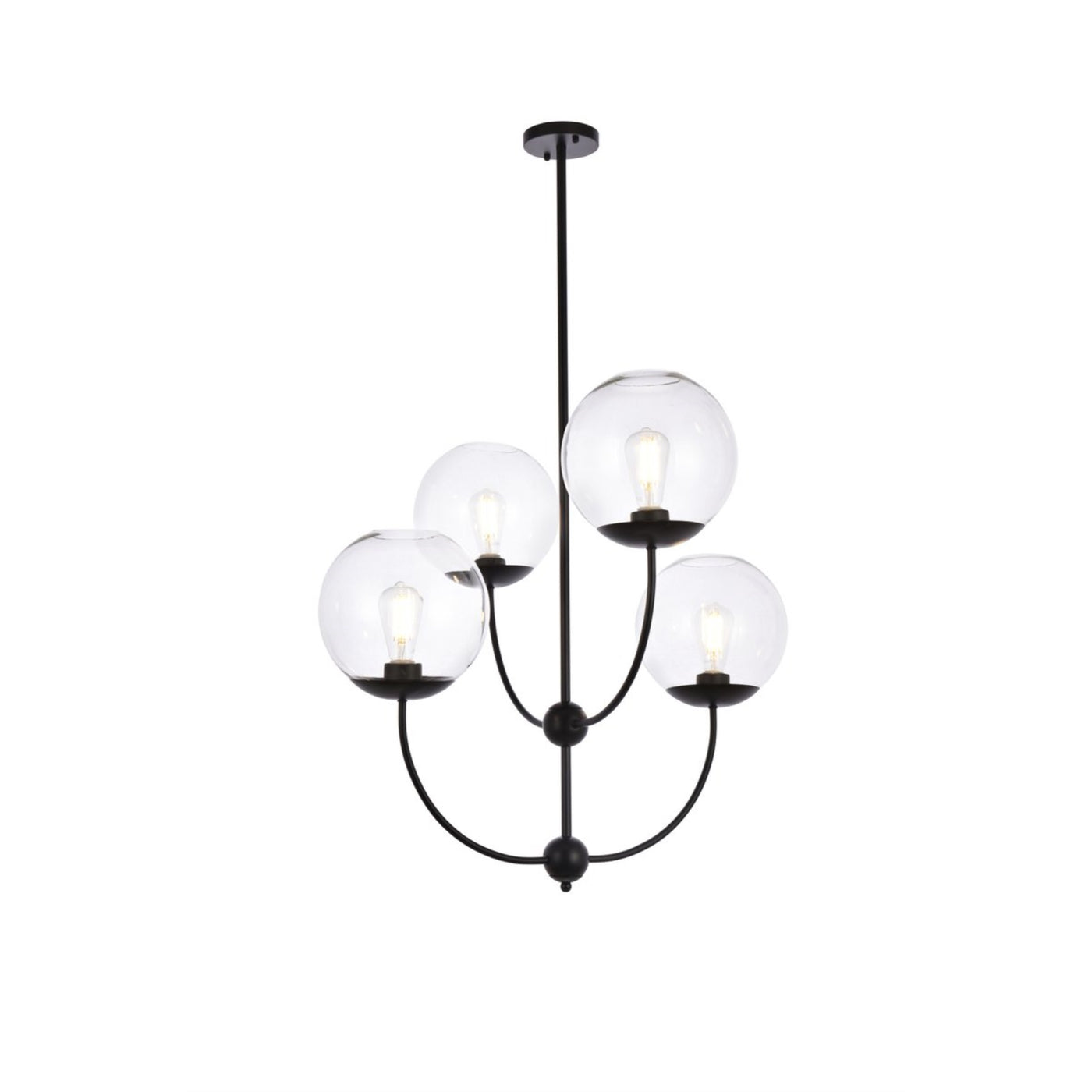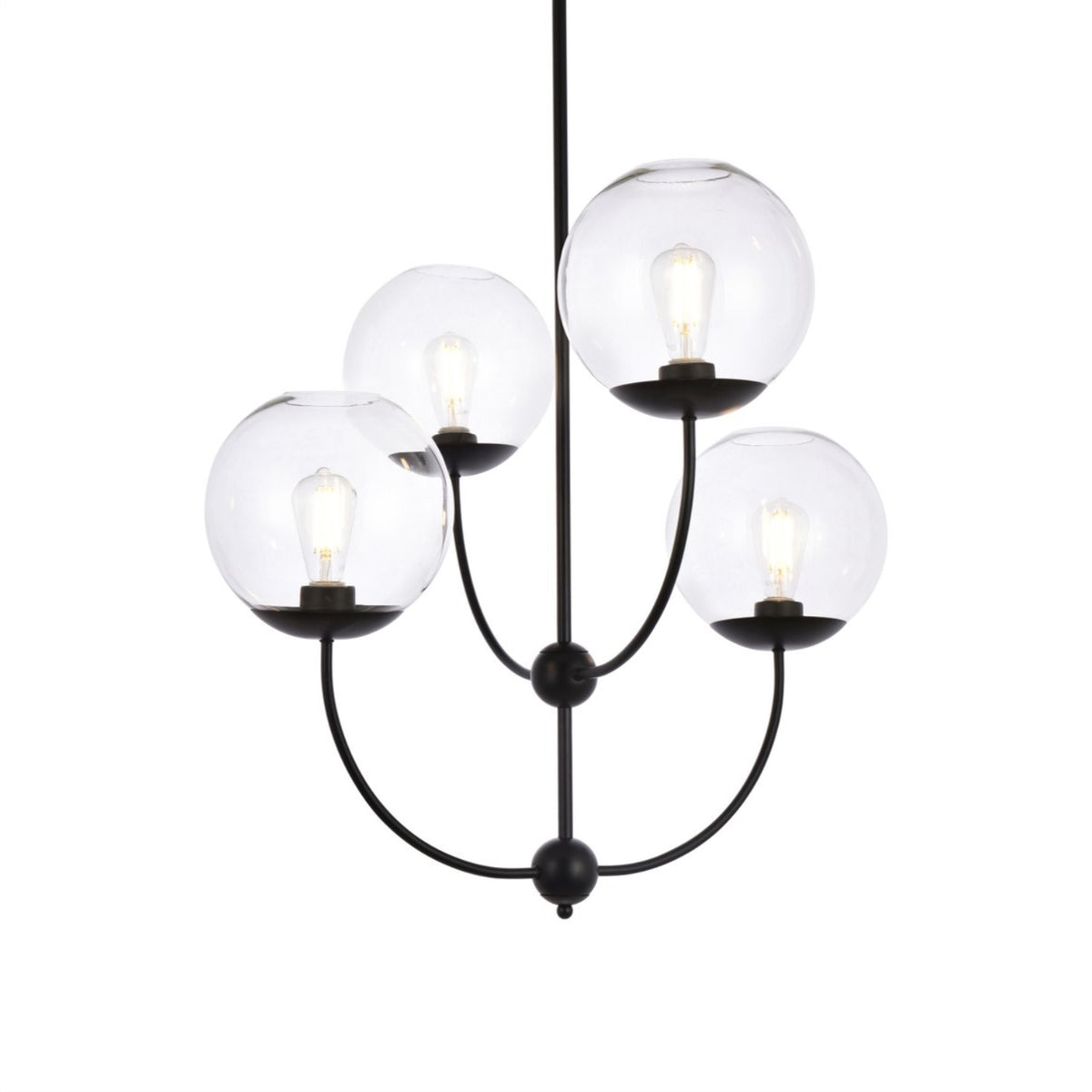 Living District Lennon 4-Light Black Metal Pendant Light With Clear Shades, Mid-Century Design