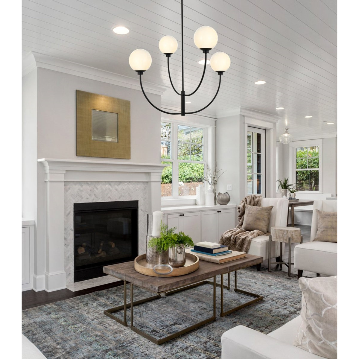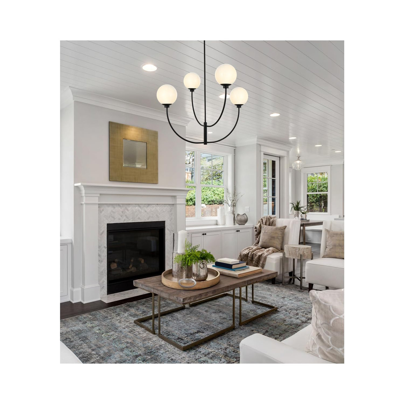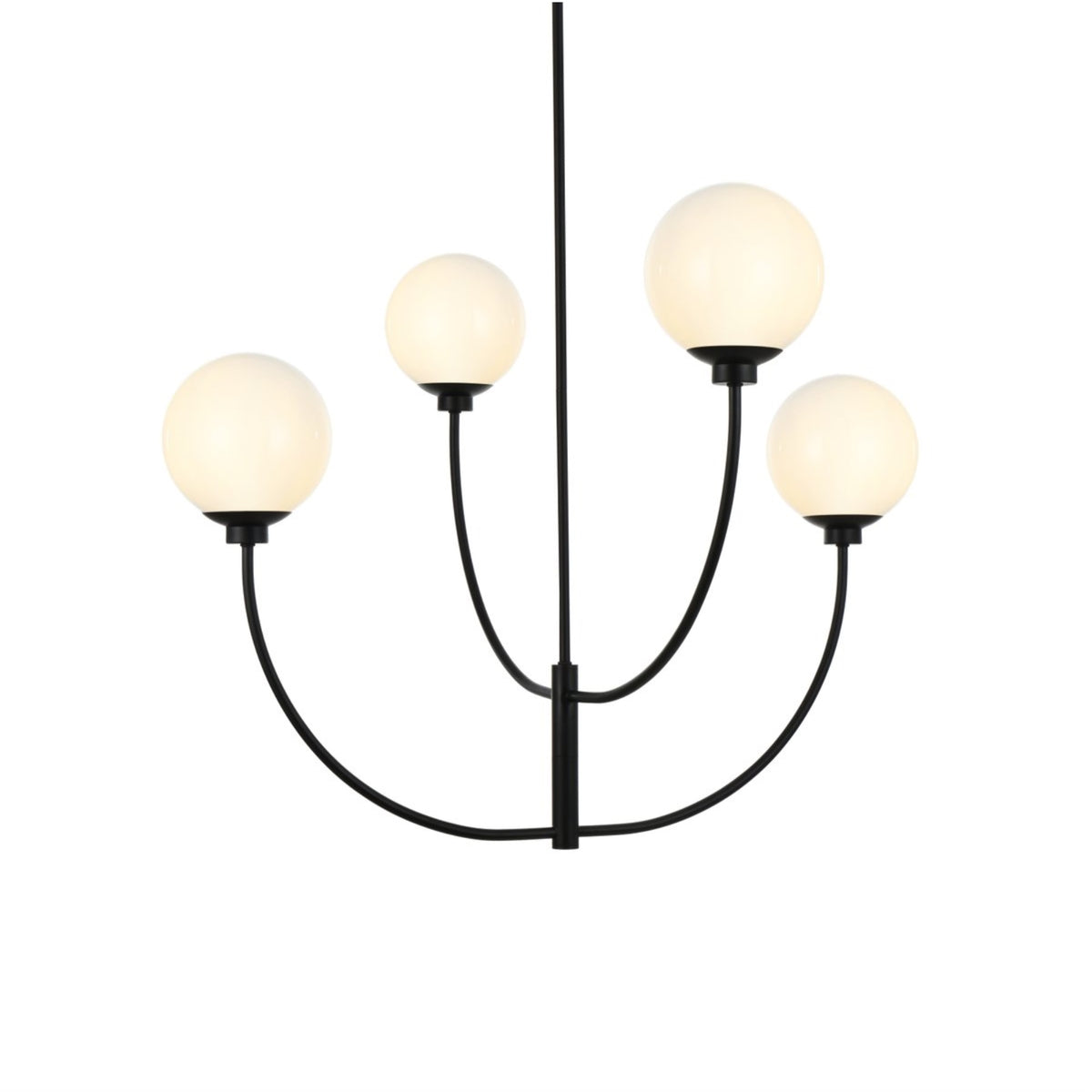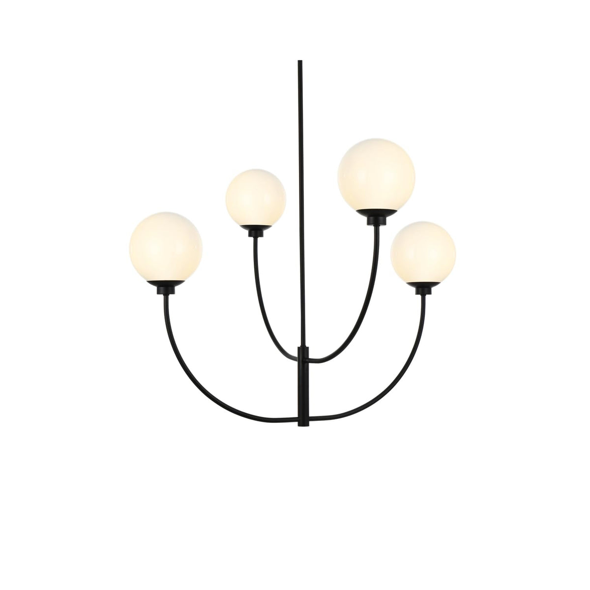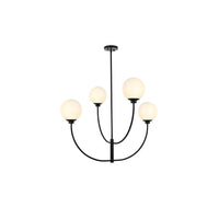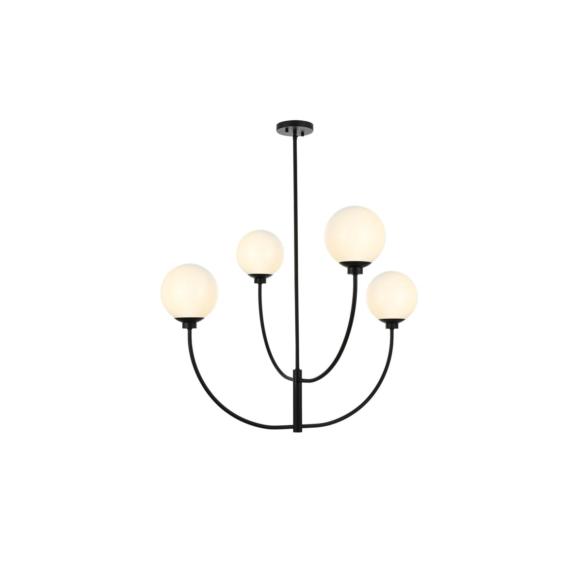 Living District Nyomi 36" Black/White Metal Glass Chandelier, 4-Light Pendant Lighting