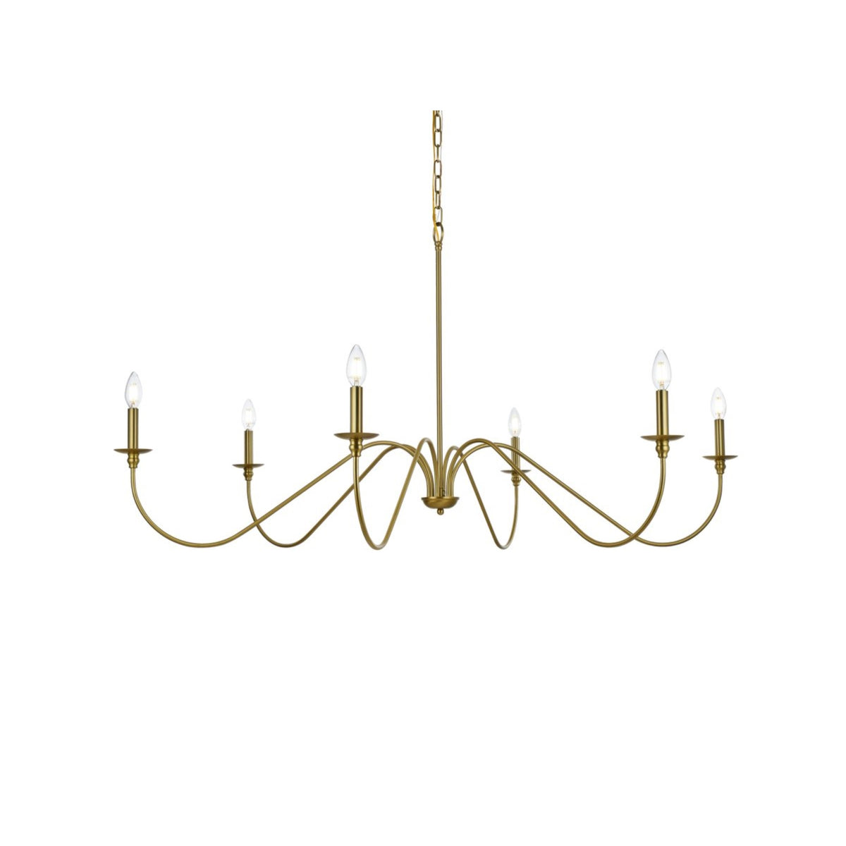 Living District Satin Gold 54" 6-Light Metal Chandelier - Transitional Design