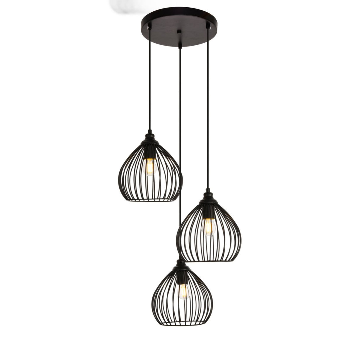 “Bottoms up!” has long been a traditional toast when raising a drink, but the Sayer collection is more like “Tops down!” because these distinctive pendant fixtures resemble inverted, long-stemmed wine glasses suspended gracefully from the ceiling. Crafting that familiar classic shape with open-air Iron ribs results in a striking transitional lampshade which casts light in all directions. Available with a black finish, the fixture accommodates either three LED or incandescent bulbs (not included). Ideal for a kitchen, bar, entry, hallway, or den, the fixtures also feature adjustable hanging heights to fit any space.Features:Materials: Iron, AluminumFinish: BlackCrafting that familiar classic shape with open-air iron ribs results in a striking transitional lampshade which casts light in all directions.3-light can accommodate either incandescent or led lamp (not included)Hanging cable is adjustable to various height.Specifications:Product Dimensions: 23.1"H x 16"W x 16"DProduct Weight: 4.5 lbsHardware: Fixture Shape - PendantBulb Type: Bulb Shape - Medium; Bulb Not Provided, Bulb Socket - E26Voltage: 110V - 125VWattage: Bulb Wattage - 40W, Max Wattage - 120WHardware: 60" of Black Wire IncludedAdjustability: Height AdjustableNumber of Lights: 3Product Height: Hanging Height - 30" Min to 70" Max