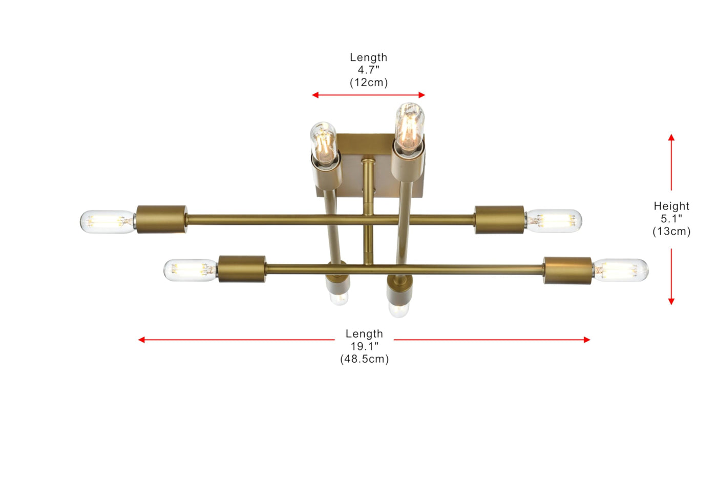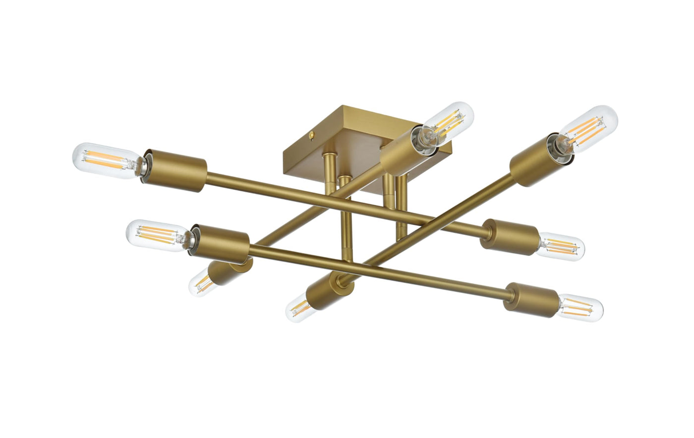 The Script collection flush mount light is an excellent piece to add to your space. The unique shape will stand out as it lights up the room. Available in a black, brass, or chrome finish this will add style to your living room, foyer, or kitchen. This product is dimmable and requires eight E12 lamps. Light bulbs not included.Features:- Materials: Iron metal- Finish: Chrome- Features a square canopy- Semi-flush mount height is fixed- Illuminated by 8 E12 base light bulbs; bulbs are not included- Exposed light source on either end to cast light in multiple directions- Lighting is compatible with LED bulbs and is dimmableSpecifications:- Product Dimensions: 5.1H x 19.1W x 19.1D- Product Weight: 2 lbs- Hardware: Fixture Shape - Flush Mount- Bulb Type: Bulb Socket - E12- Number of Lights: 8- Voltage: 110V - 125V- Wattage: Bulb Wattage - 40W, Max Wattage - 320W- Hardware: 11 of black & white wire included- Adjustability: Not Height Adjustable