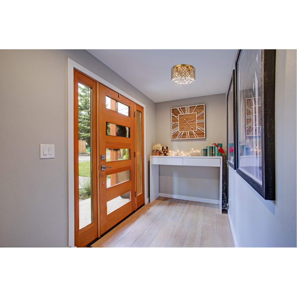 Enjoy the shimmering beauty of the Tully flush mount in a brass finish. The elegant lattice metal curtain allows for the hanging crystals to play and dance around the illuminating light, with larger crystals at the base peeking out to say hello. Lights on or off, this flush mount will surely make quite a statement in your home!Features:- Materials: Iron metal, crystal- Finish: Brass, clear- Brass finish flush mount with lattice shade decorated with florets and strands of crystals and suspended faceted crystal balls- Requires 4 E12 bulbs (bulbs not included)- Contrasting gold frame finish complements the brilliant clear crystals- Dry location ratedSpecifications:- Product Dimensions: 9.4H x 13.5W x 13.5D- Product Weight: 8.5 lbs- Hardware: Fixture Shape - Flush Mount- Bulb Type: Bulb Socket - E12- Number of Lights: 4- Voltage: 120V- Wattage: Bulb Wattage - 40W, Max Wattage - 160W- Hardware: 15.7 of clear wire included- Adjustability: Height Adjustable