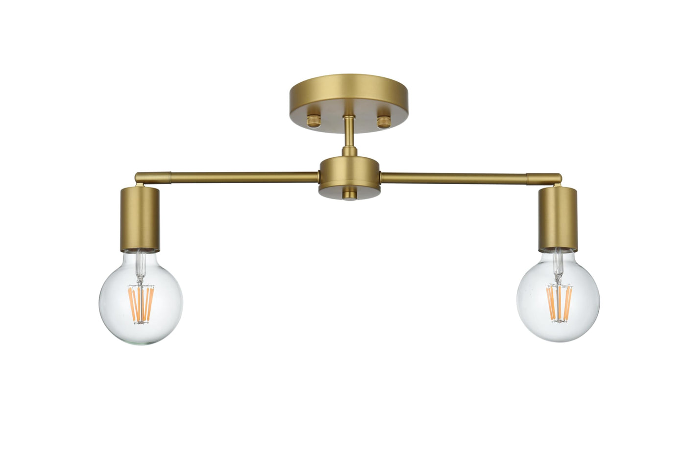 The Zane Collections flush mount light is functional, yet stunningly simple. The fixture has a linear shape and it is versatile which allows itself to blend into any room, while maintaining their bright personality. Available in a black, chrome, or brass finish let this light illuminate your life. This product is dimmable and requires two E26 lamps. Light bulbs not included.Features:- Materials: Iron metal- Finish: Brass- Features a round canopy- Semi-flush mount height is fixed- Illuminated by 2 E26 base light bulbs; bulbs are not included- Metal arms are adjustable, sockets can fan out straight or down- Perfect for lighting over hallways, closets, bathrooms, and bedrooms- Lighting is compatible with LED bulbs and is dimmableSpecifications:- Product Dimensions: 6.2H x 4.7W x 21.5D- Product Weight: 1.3 lbs- Hardware: Fixture Shape - Flush Mount- Bulb Type: Bulb Socket - E26- Number of Lights: 2- Voltage: 110V - 125V- Wattage: Bulb Wattage - 40W, Max Wattage - 80W- Hardware: 11 of black & white wire included- Adjustability: Height Adjustable