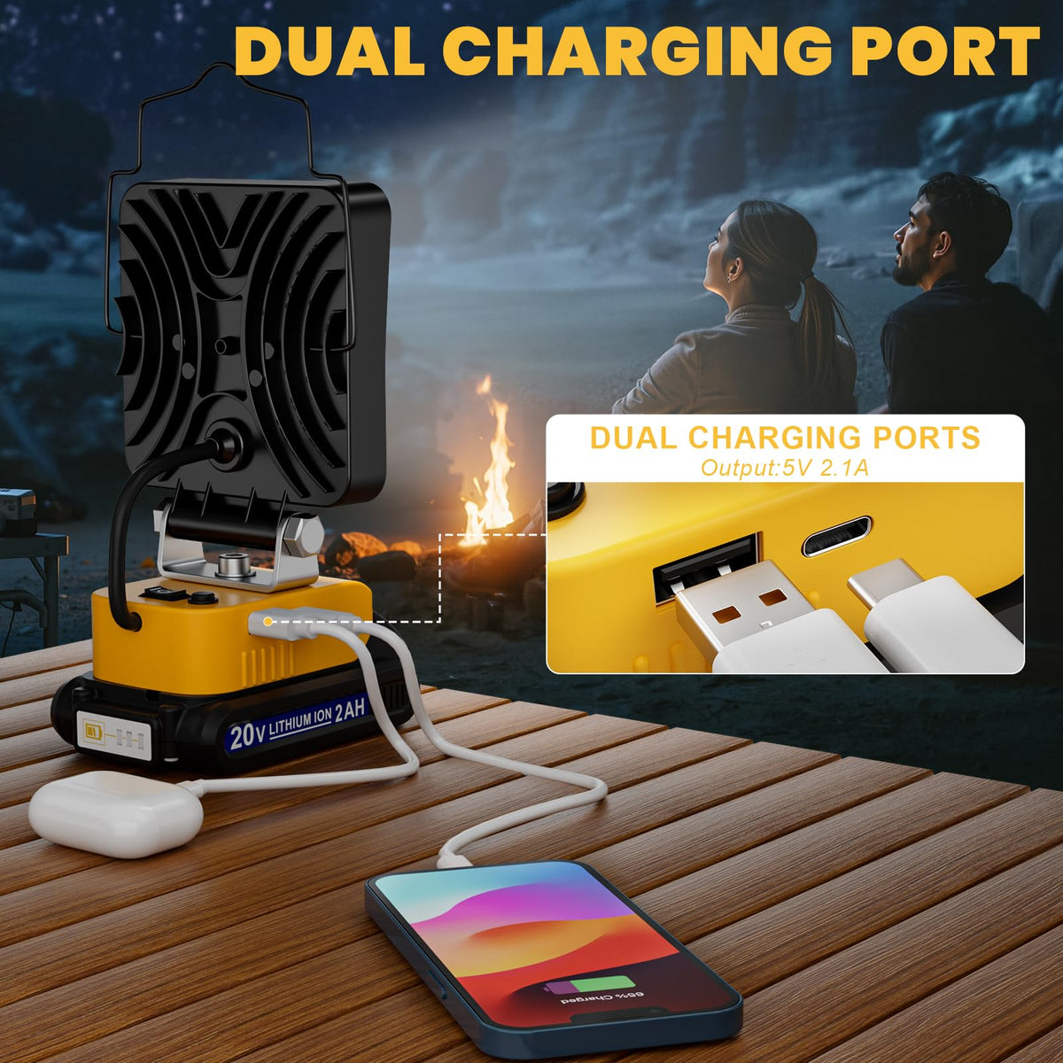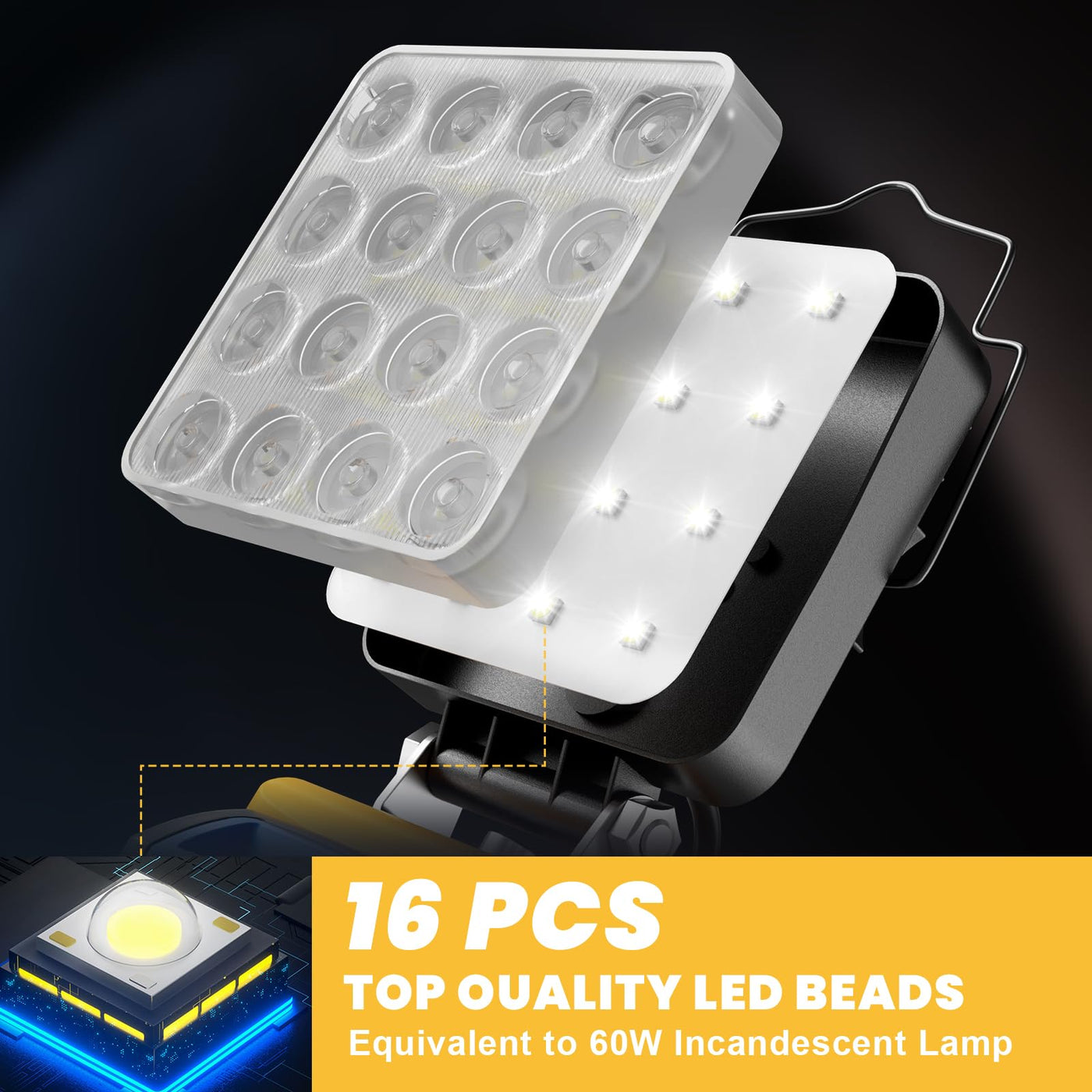 Livowalny 20V Max Led Work Light For Dewalt Battery, 60W 6000Lm Flood Lights, Cordless Flashlight Shop Light Worklight With Usb