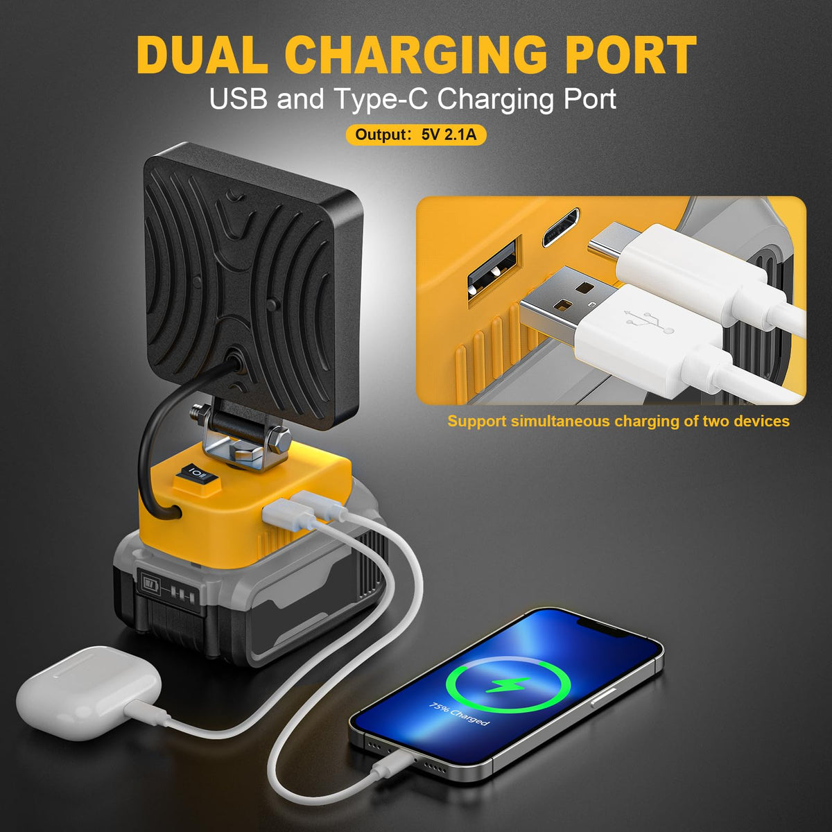 Livowalny Cordless Flood Work Light For Dewalt Light 20V Max Led, 27W 2700Lm Battery Light For Dewalt Tools In Camping, Outdoor Lighting (Battery Not Included)