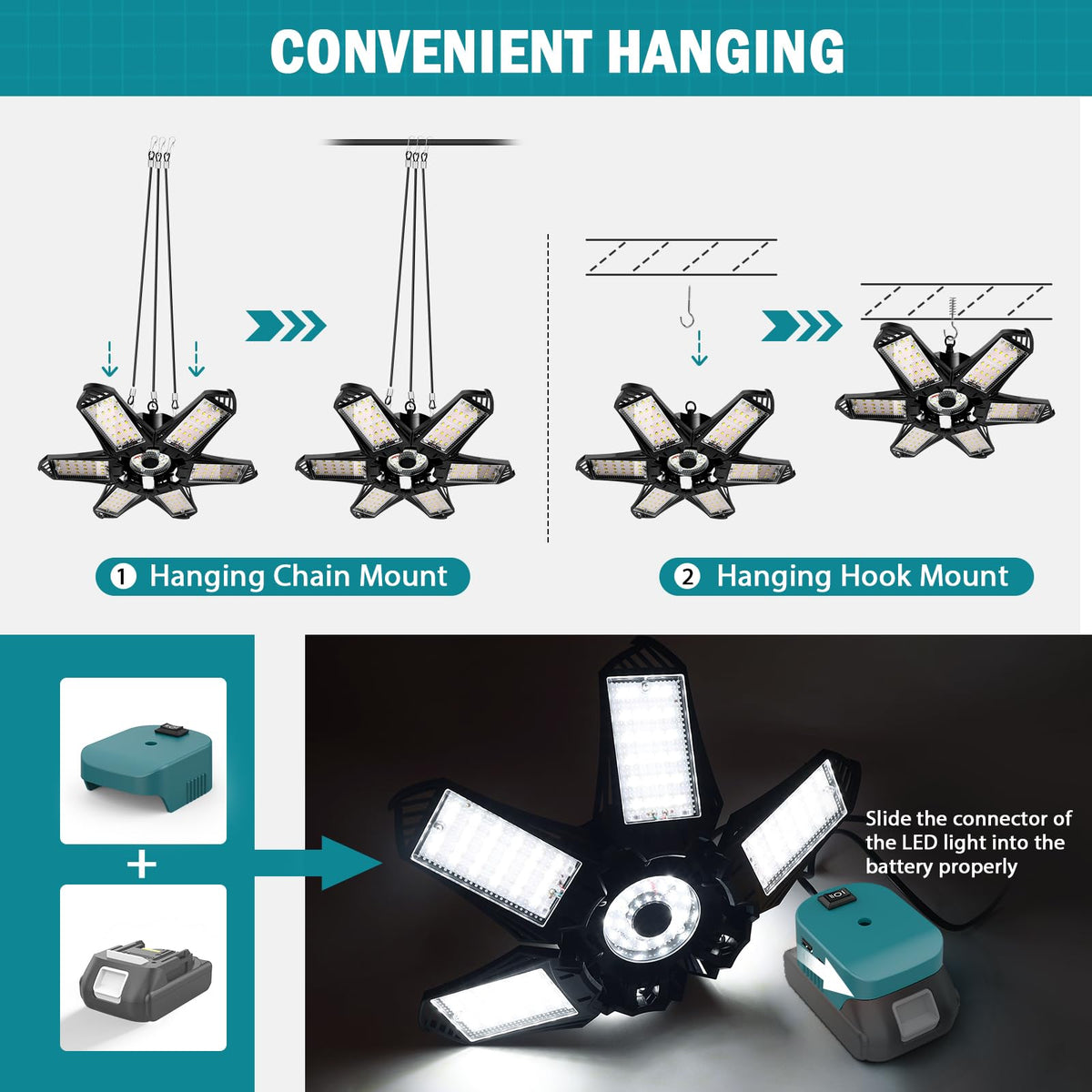 Livowalny Led Work Light For Makita 18V Battery, Cordless 68W 6800Lm Led Flood Light Battery Light Garage Light Battery Powered