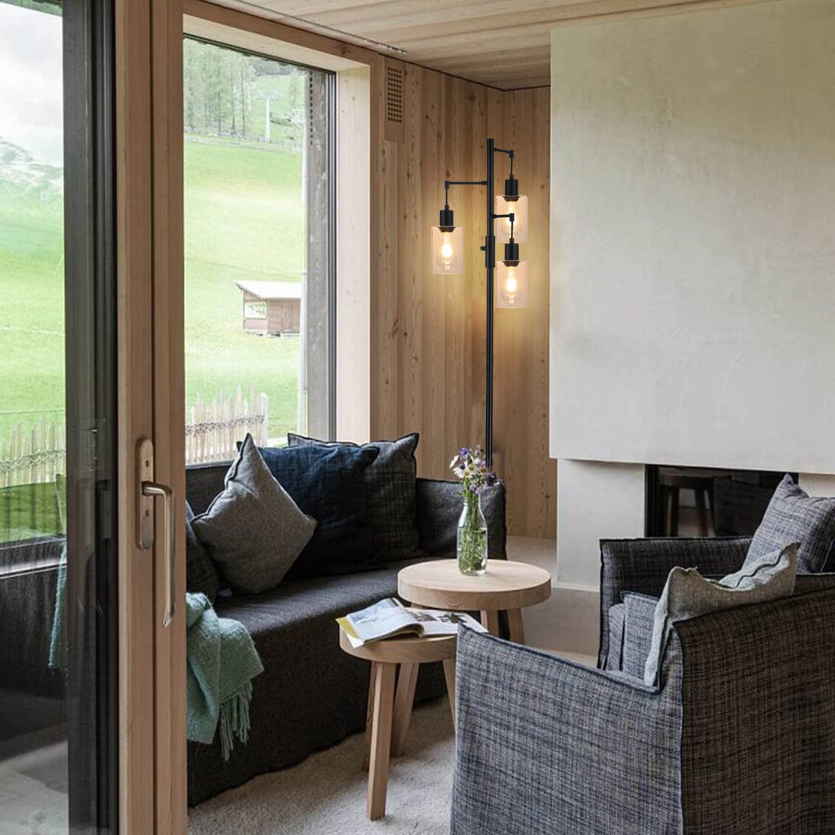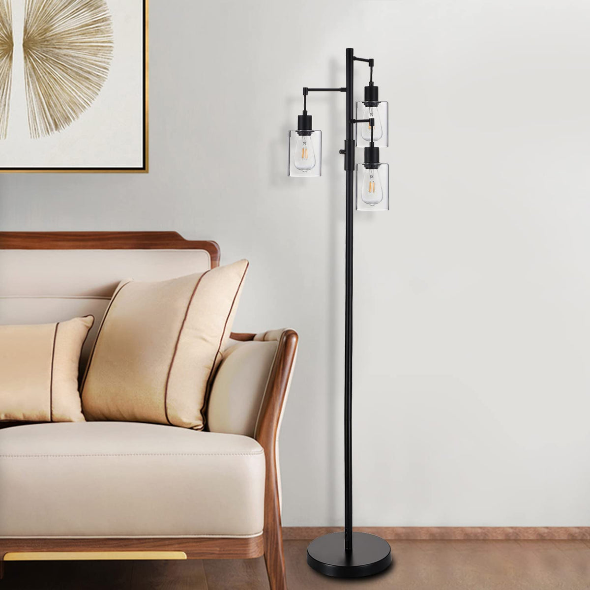 Liylan Industrial Tree Floor Lamp - Black, Dimmable Farmhouse Standing Lamp With Clear Glass Shade