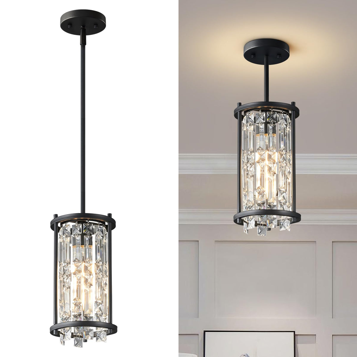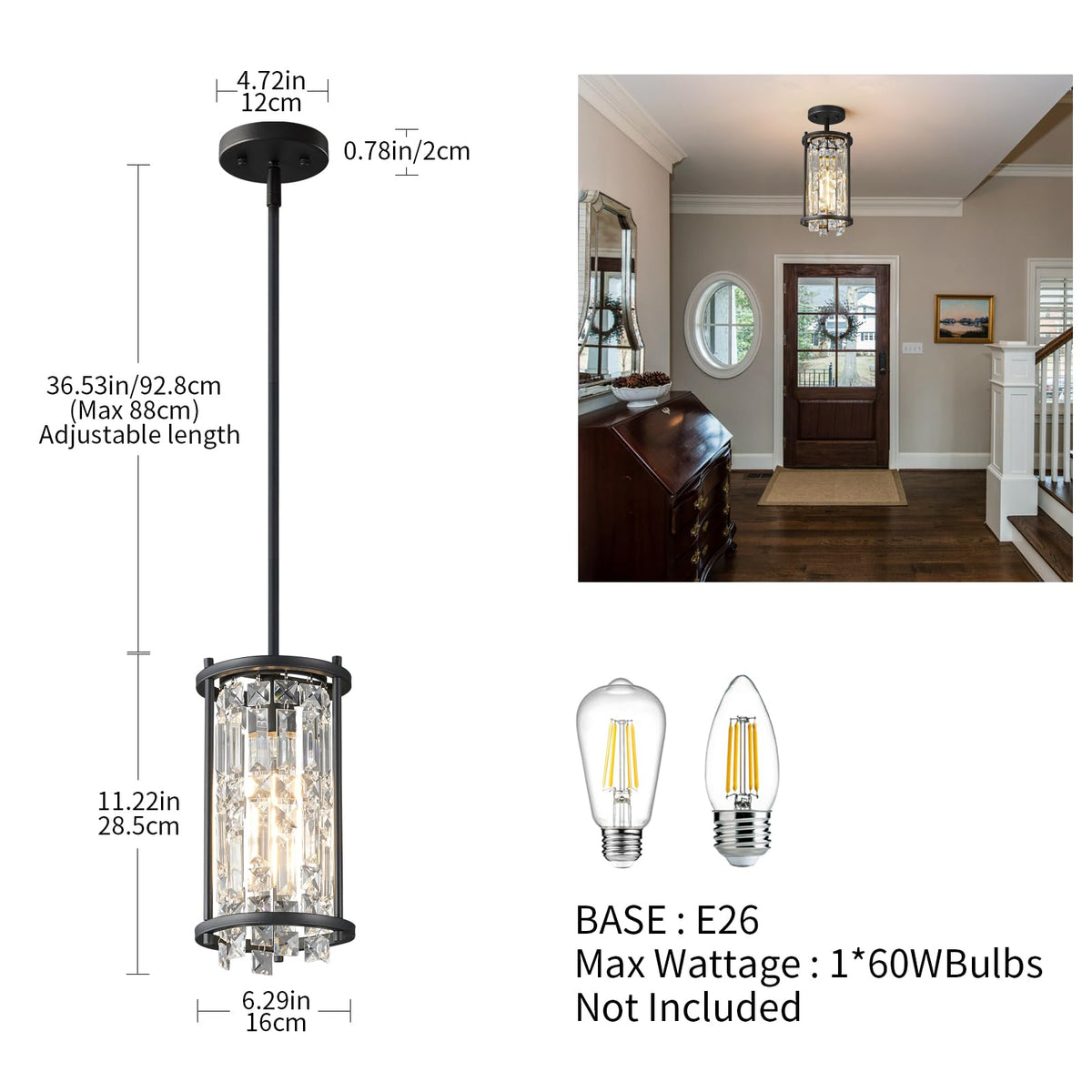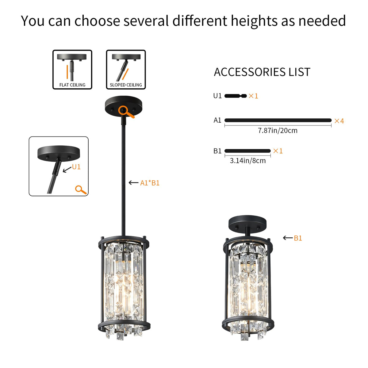 Q: What materials is the chandelier made from?A: The chandelier features a combination of metal and crystal materials. Its black metal frame and crystal accents create a stylish contrast, making it a beautiful addition to any home decor.