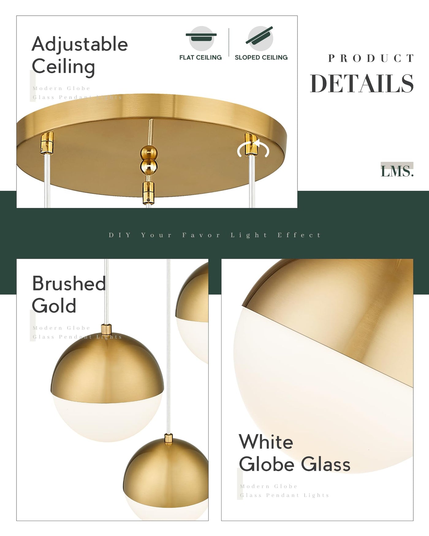 Q: Can the height of the pendant lights be adjusted easily?A: Yes, the height of the LMS pendant lights can be easily adjusted. Simply change the length of the cords to your preferred height and secure them with the provided set screws.