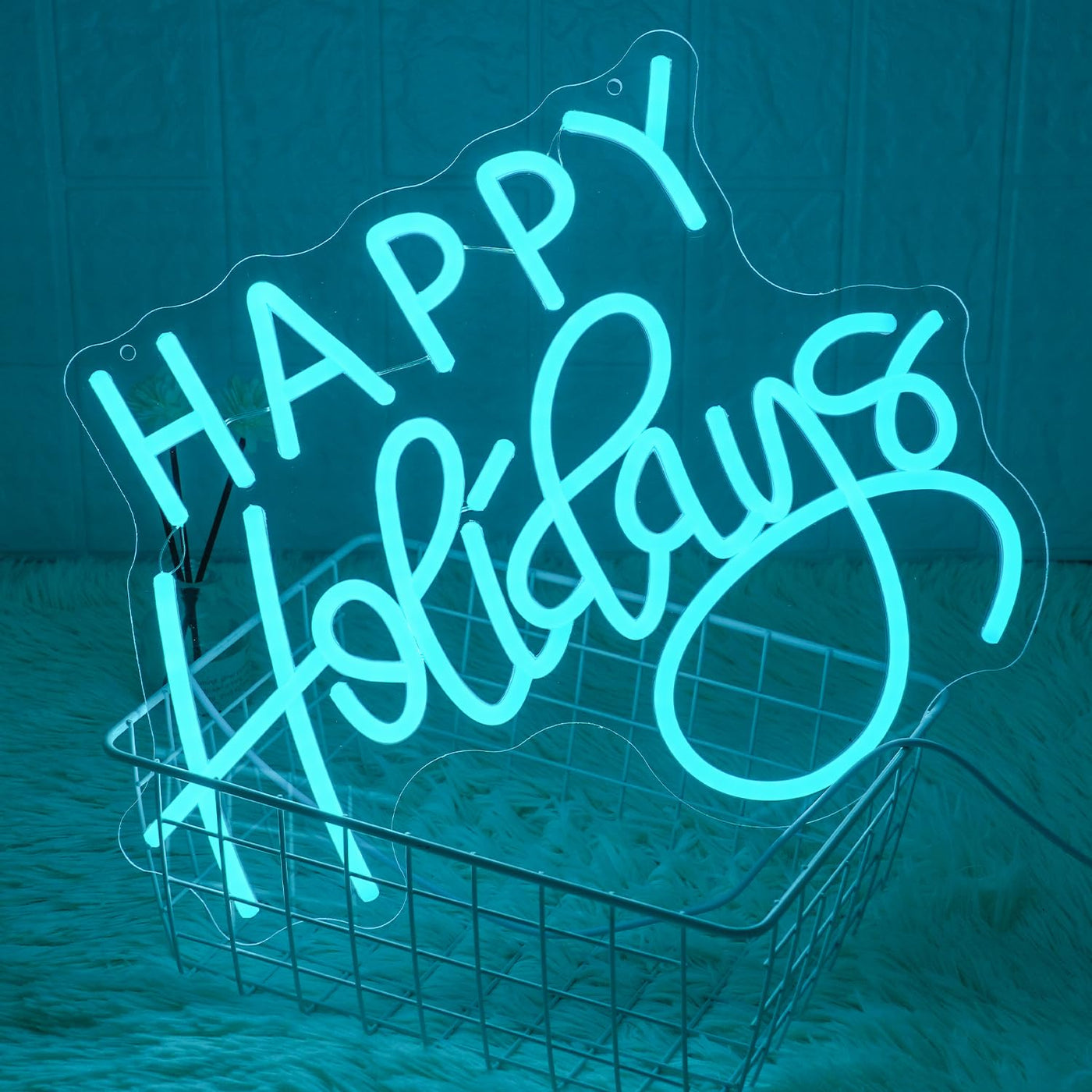 Lmsignly Happy Holidays Neon Sign For Wall Decor Blue Holiday Neon Lights Dimmable Led Christmas Neon Signs For Christmas Thanksgiving New Year