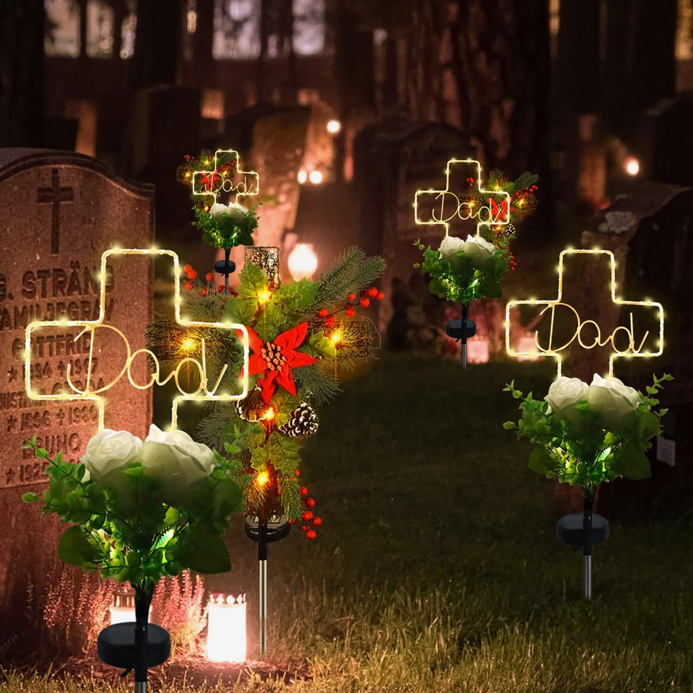 Lmtocs New Version Solar Cross Light For Cemetery Dad, 2 Modes With Rose Flower For Dad Grave Decorations, Waterproof Outdoor Li