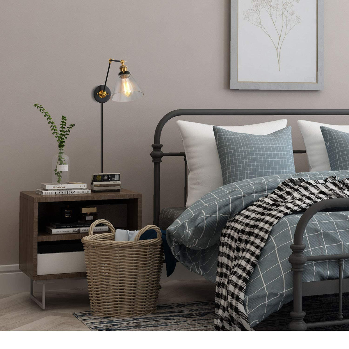 [Vintage Functional Design] The wall light with black and gold brushed finish offers modern yet antique appeal to your sweet home. It features with 2-in-1 design allowing you to choose modes of plug-in or hardwired as your need. Equipped with an extra black cord with switch located on the middle makes this light convenient to turn on/off. 260?vertically adjustable up and down(Not side to side) swing arm with patent butterfly screws and sturdy joints helps you to direct light exactly where you need it. Canopy Size: D4.7'' | [Perfect Fits] This black wall mount lamp including 2 x 10 1/3