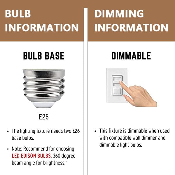 Q: What type of bulbs can be used with the Lodstob 2-Light Flush Mount Ceiling Light?A: The Lodstob 2-Light Flush Mount Ceiling Light is compatible with US standard E26 bulbs, including LED, CFL, incandescent, and halogen bulbs. It also works with dimmable bulbs and dimmer switches, allowing you to create various atmospheres in your space.