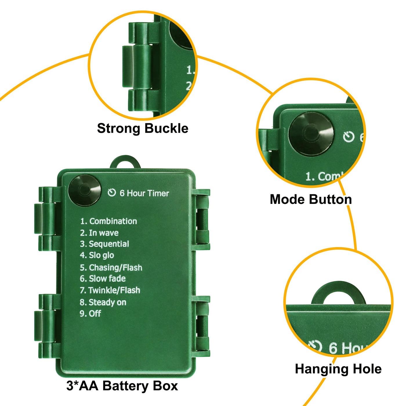 8 Lighting Modes: Choose from various modes including Combination, Waves, Sequential, Slo-Glo, Chasing/Flash, Slow Fade, Twinkle/Flash, and Steady-On to match different moods and occasions.