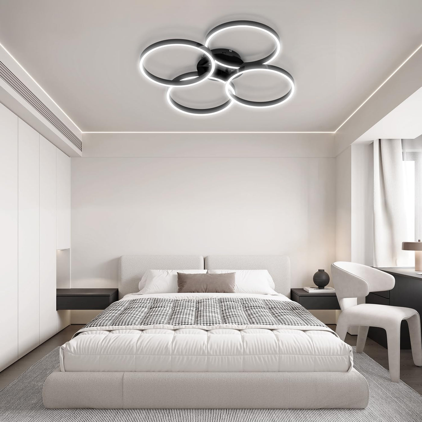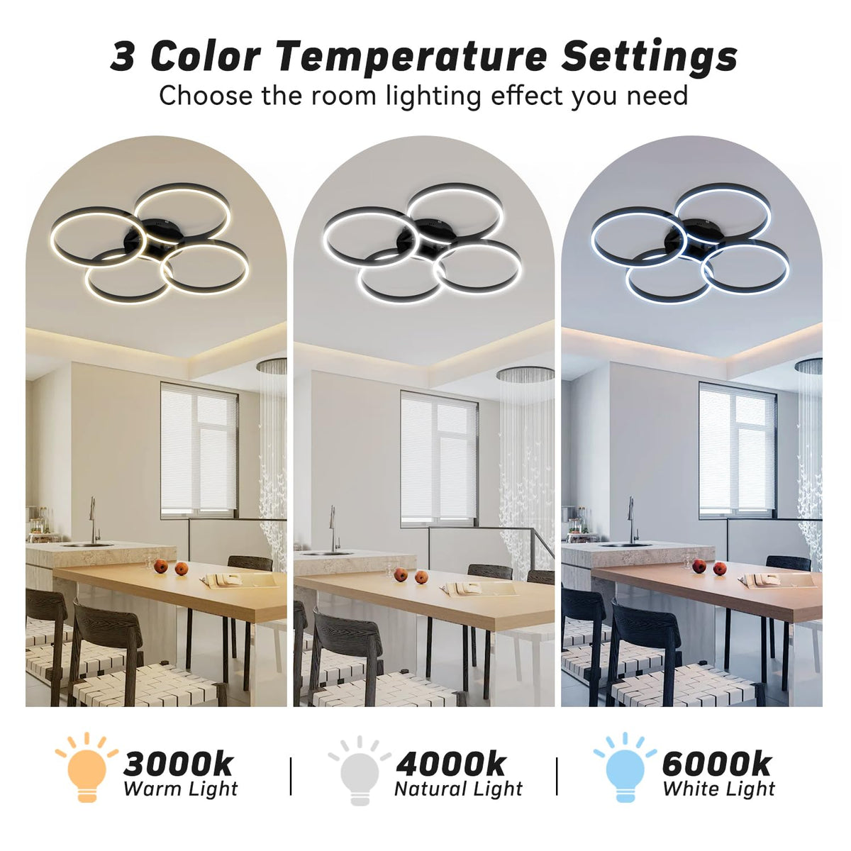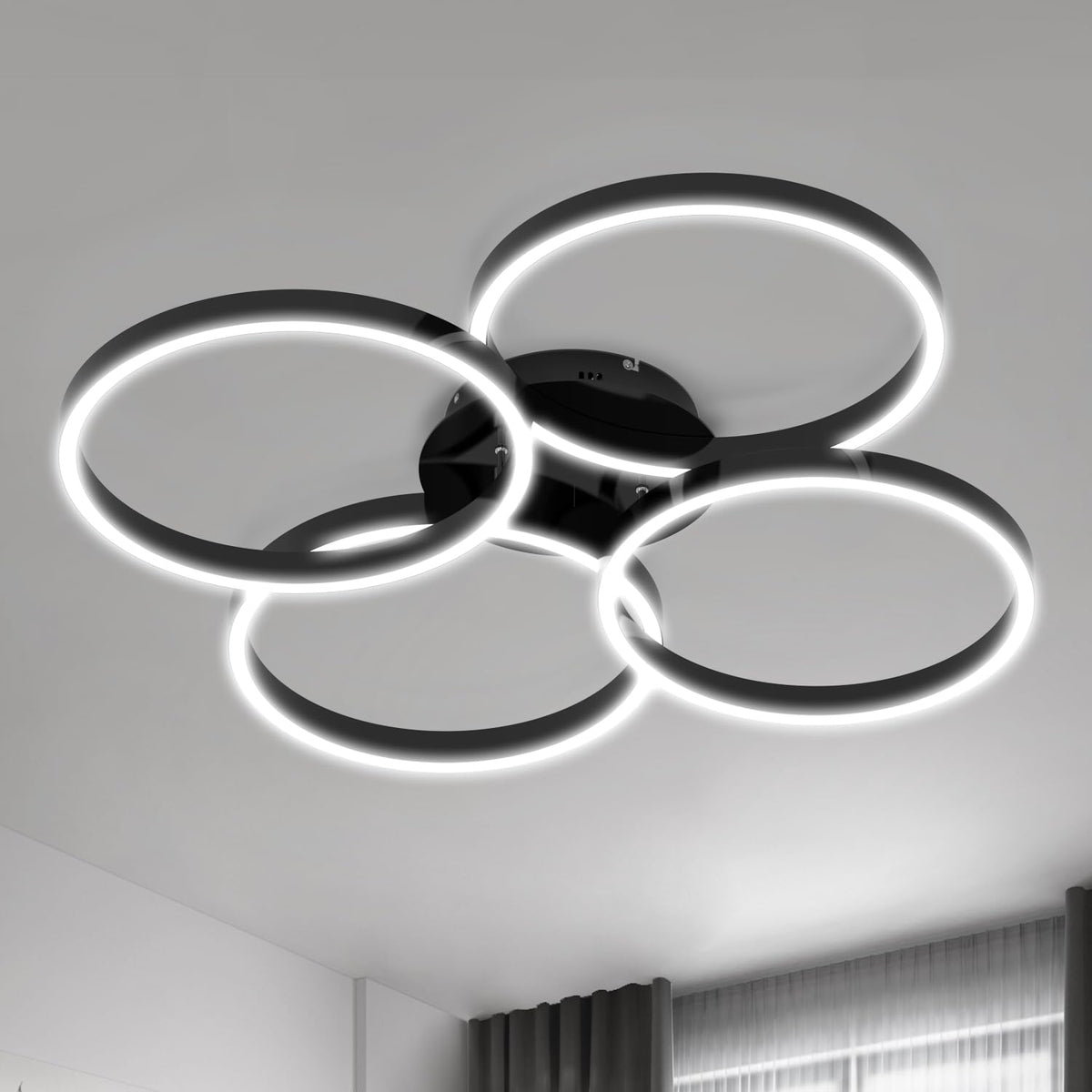 Q: Is the design of the ceiling light suitable for modern home decor?A: Yes, the four-ring geometric design of the ceiling light adds a stylish and contemporary touch, making it a great fit for modern home decor.