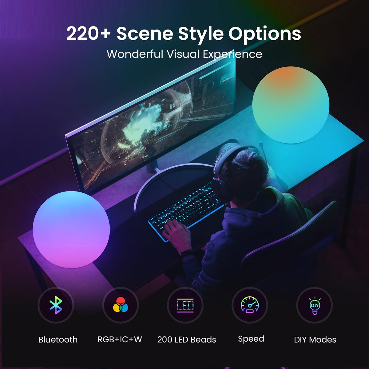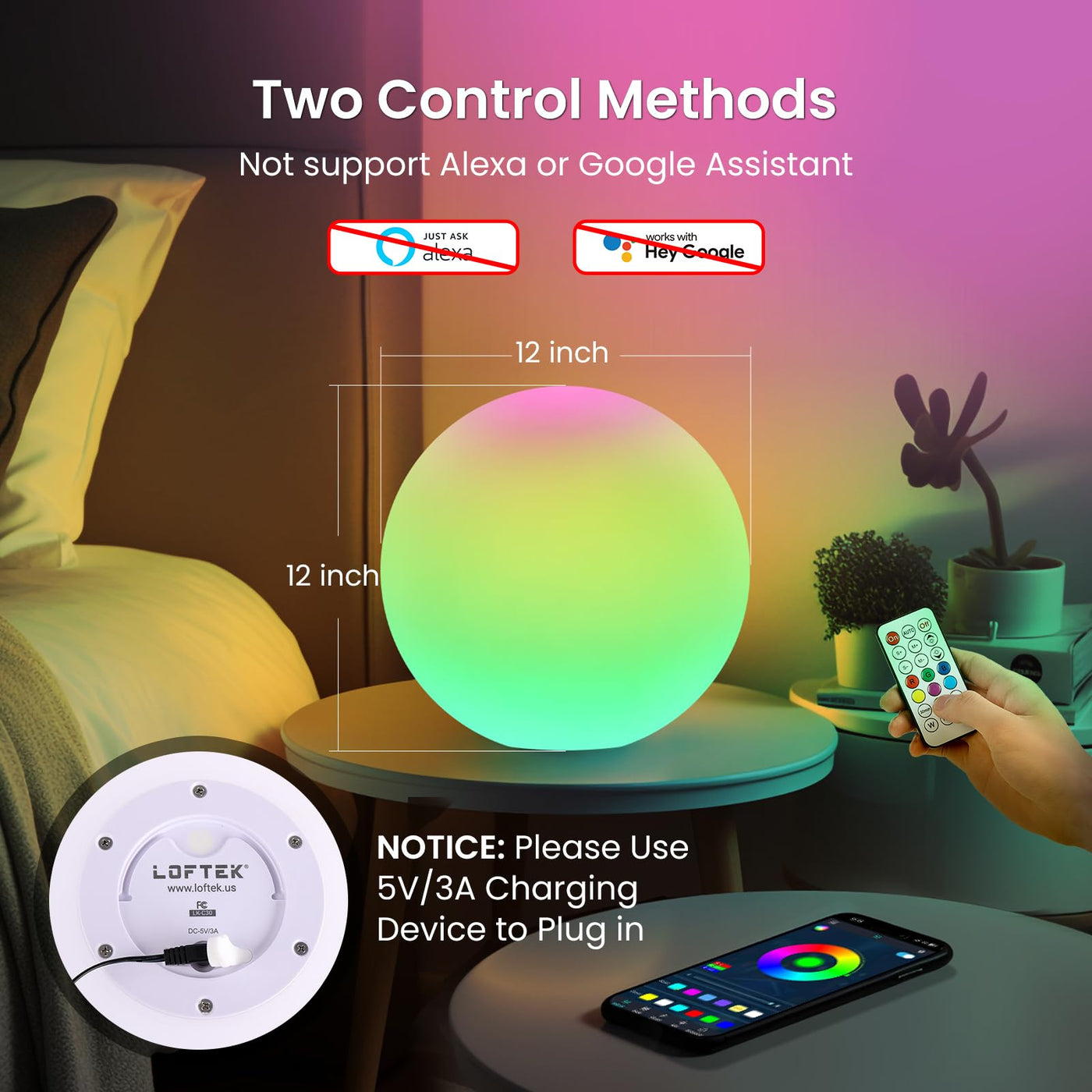 Loftek Color Changing Night Light, Smart Led Lamp With Bluetooth App And Remote Control, Music Sync, 220 Scene Modes, 12-Inch Rgb Ball Mood Lighting For Living Room, Bedroom Event(Corded Electric)