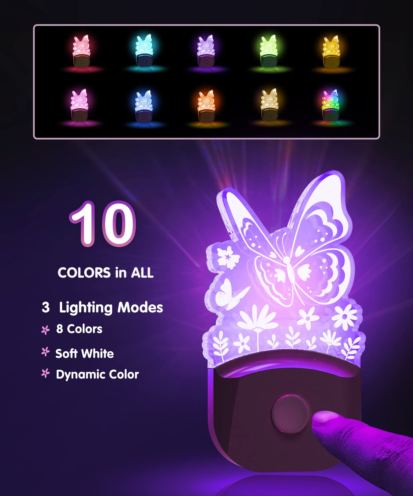 Lohas Led Butterfly Night Light Dusk To Dawn, Plug Into Wall, Rgb+Soft White 3000K, For Kids, Children Girls Room Decor, Baby Ro
