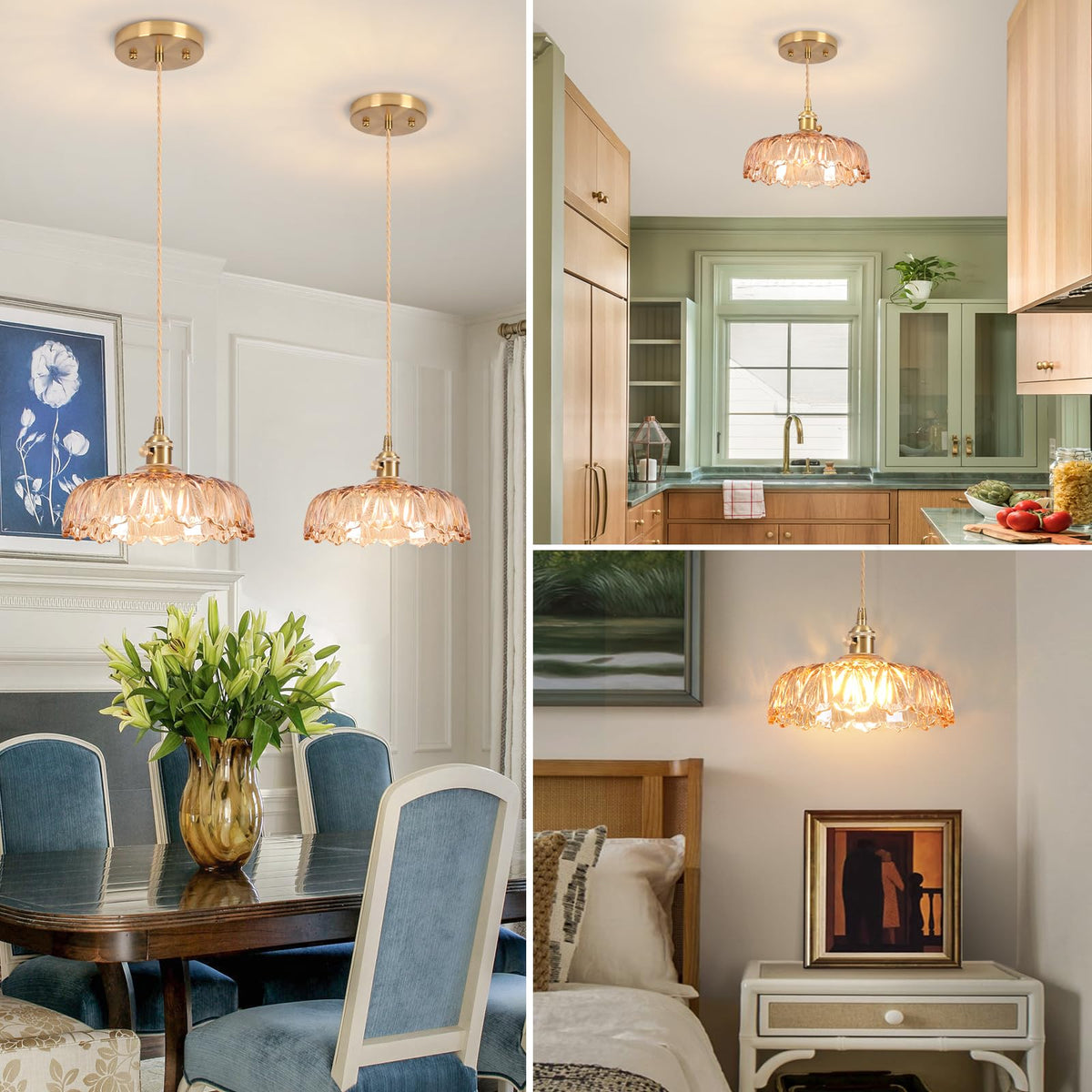 Q: Where can I use the Loiogohot Glass Pendant Light?A: This elegant pendant light is suitable for various settings, including kitchen islands, bedrooms, dining rooms, living rooms, restaurants, hotels, cafes, bars, and corridors.