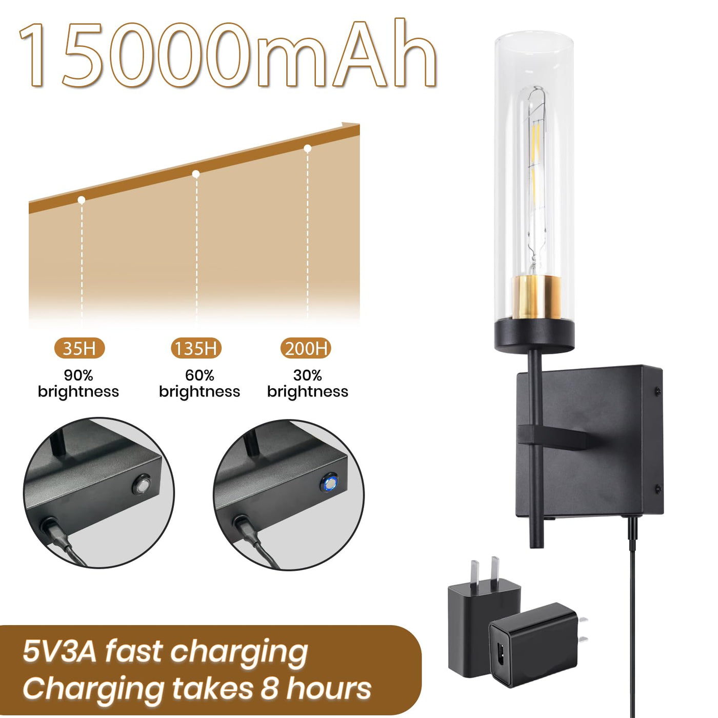 Loiogohot Wall Sconce Set Of 2,Battery Operated Wall Sconce,Infinitely Dimmable With Remote Control,15000Mah Endurance 200 Hours