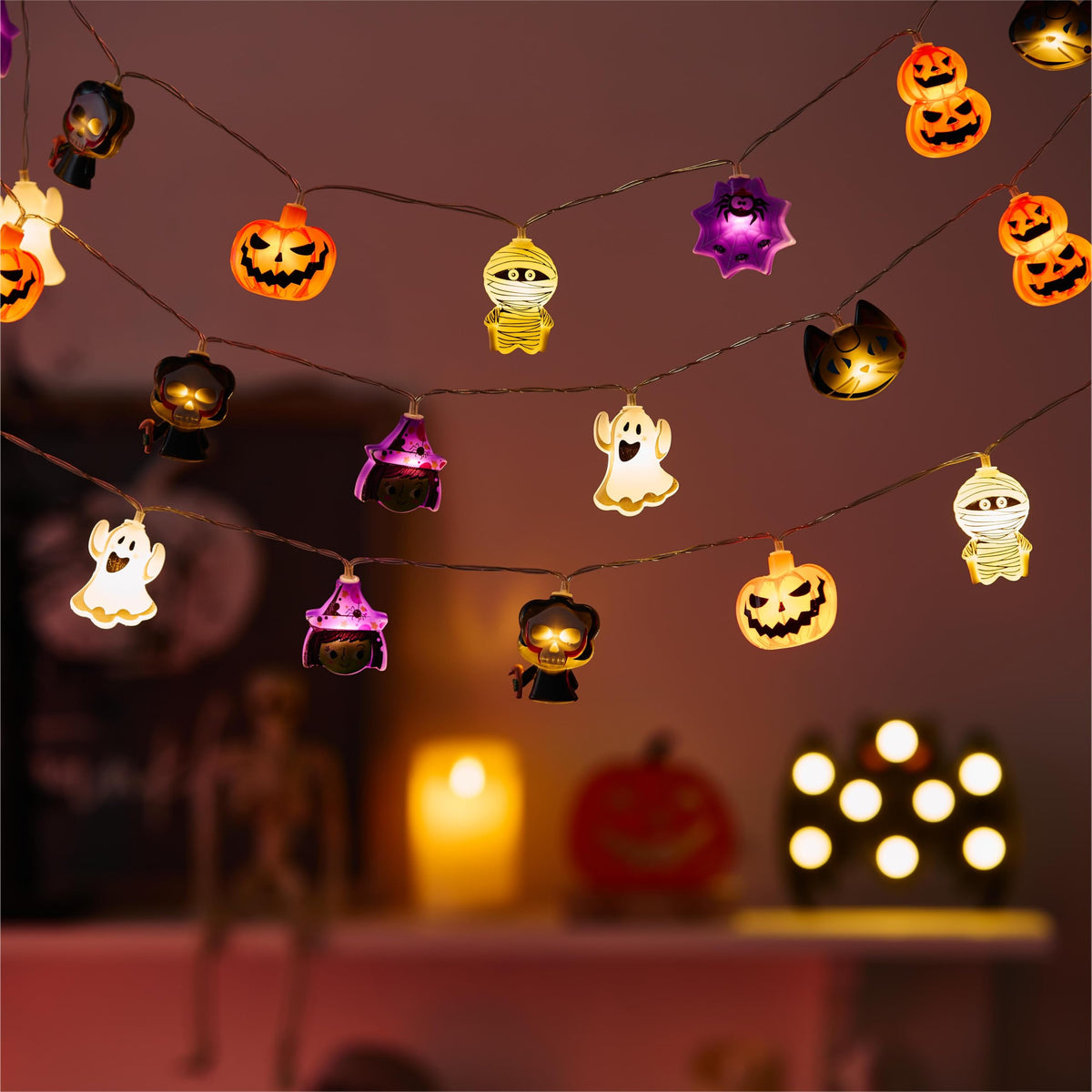 Q: Are the Halloween string lights battery-operated?A: Yes, these Halloween string lights are battery-operated and require 3 AA batteries, which are not included with the product.