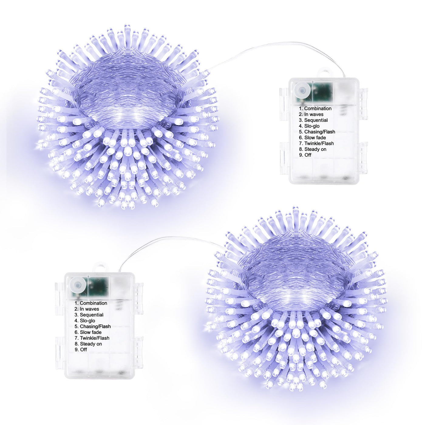 Lomotech Battery Operated Christmas Lights - 2 Pack Total 33Ft 100Leds String Lights 8 Modes Waterproof With Timer For Home Garden Party Holiday Tree Decoration (Clear Wire Warm White)