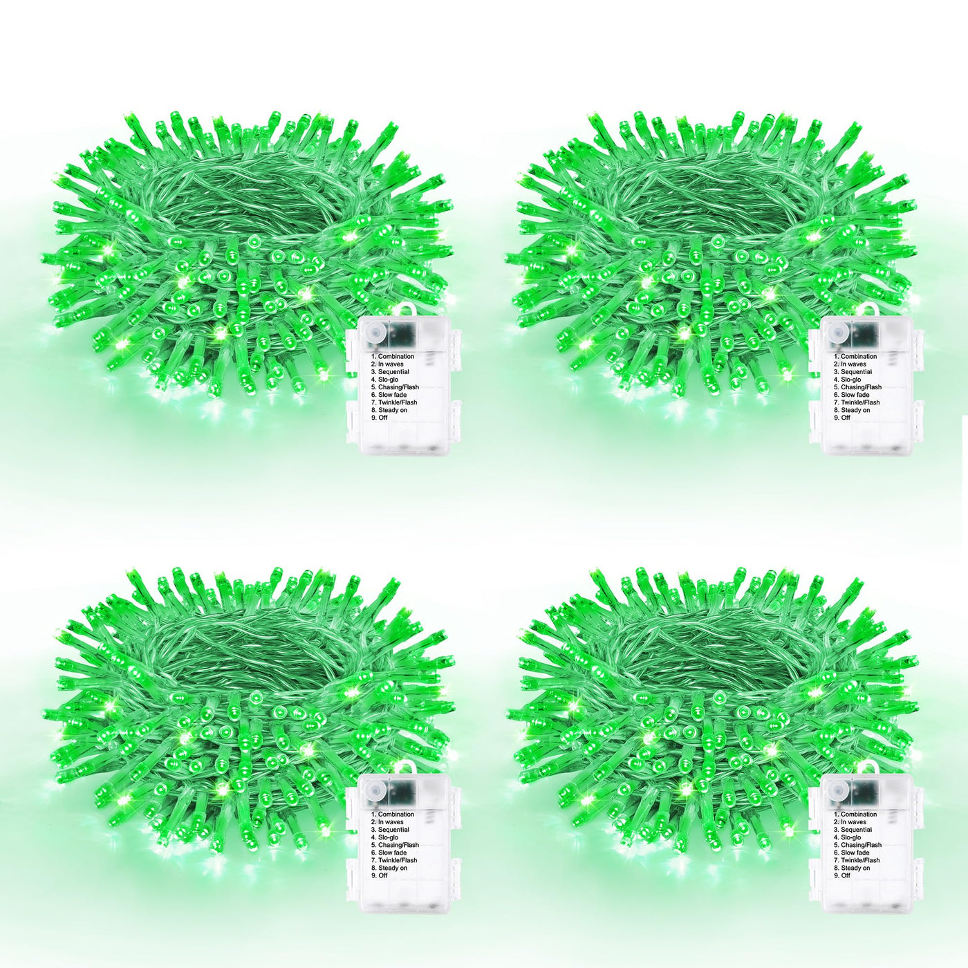 Lomotech Battery Operated Christmas Lights - 4 Pack Total 66Ft 200Leds String Lights 8 Modes Waterproof With Timer For Home Garden Party Holiday Tree Decoration (Clear Wire Green)
