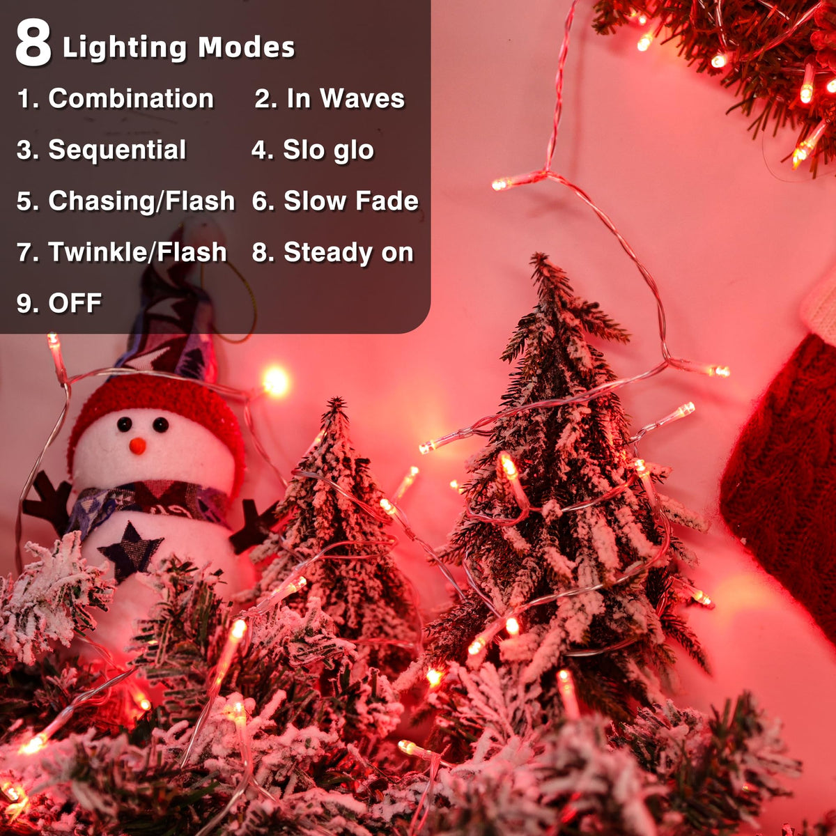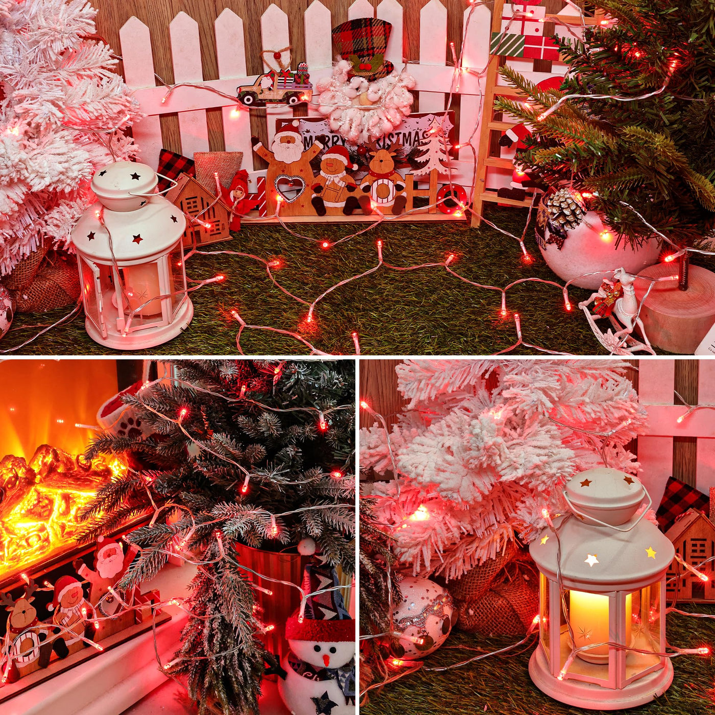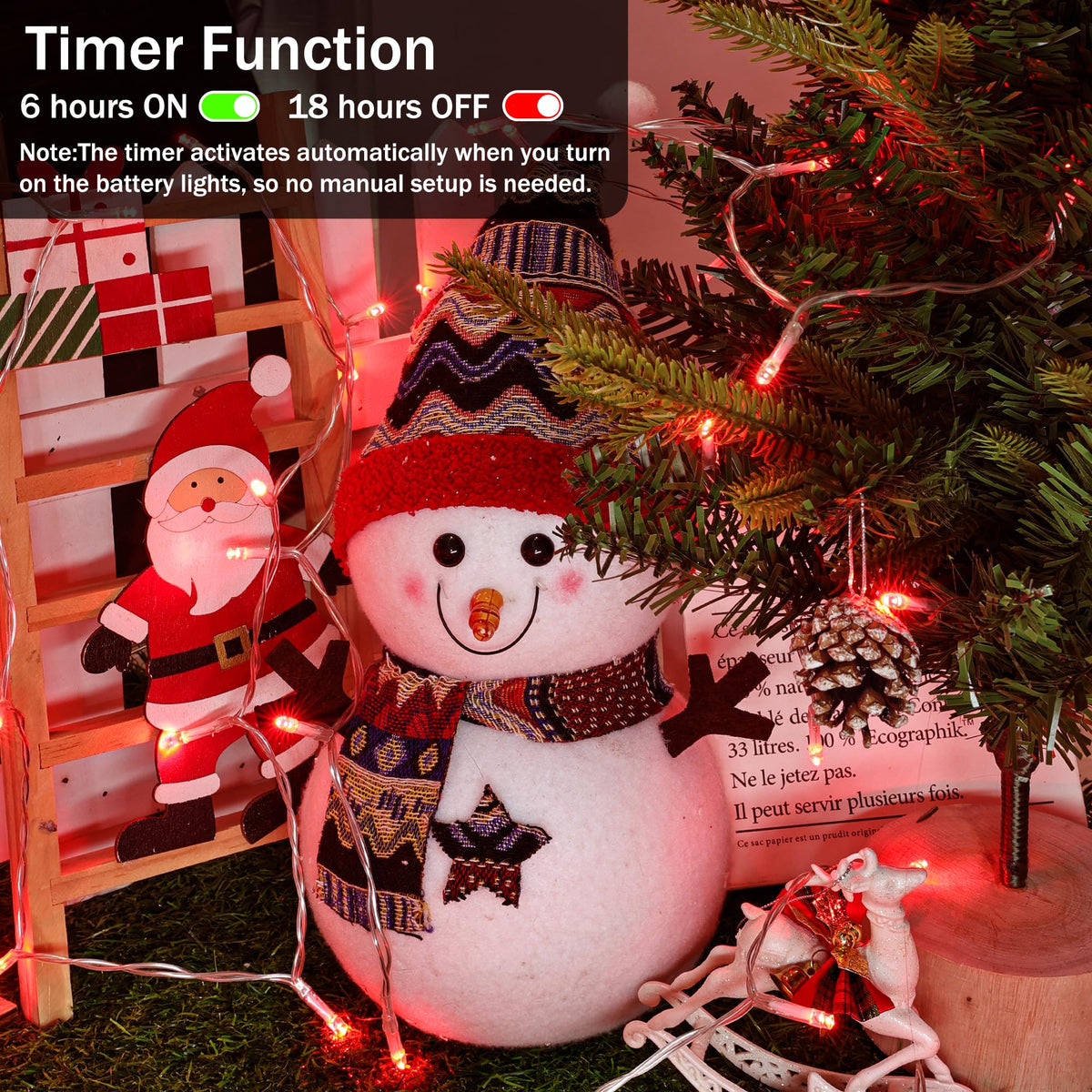 Lomotech Battery Operated Christmas Lights - 4 Pack Total 66Ft 200Leds String Lights 8 Modes Waterproof With Timer For Home Garden Party Holiday Tree Decoration (Clear Wire Red)