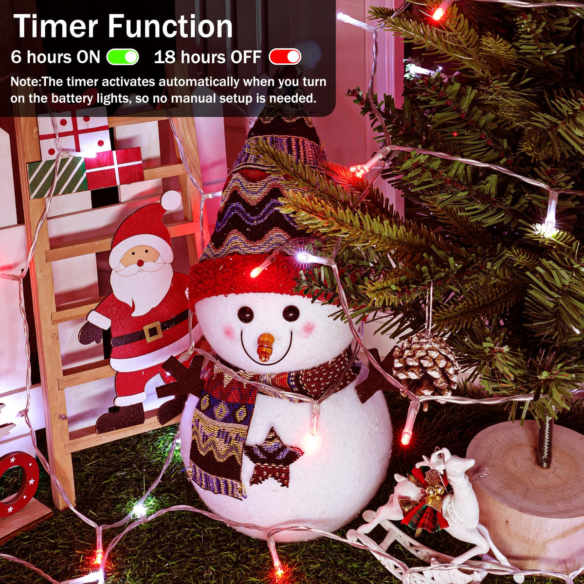 Lomotech Battery Operated Christmas Lights - 4 Pack Total 66Ft 200Leds String Lights 8 Modes Waterproof With Timer For Home Garden Party Holiday Tree Decoration (Clear Wire Red & White)