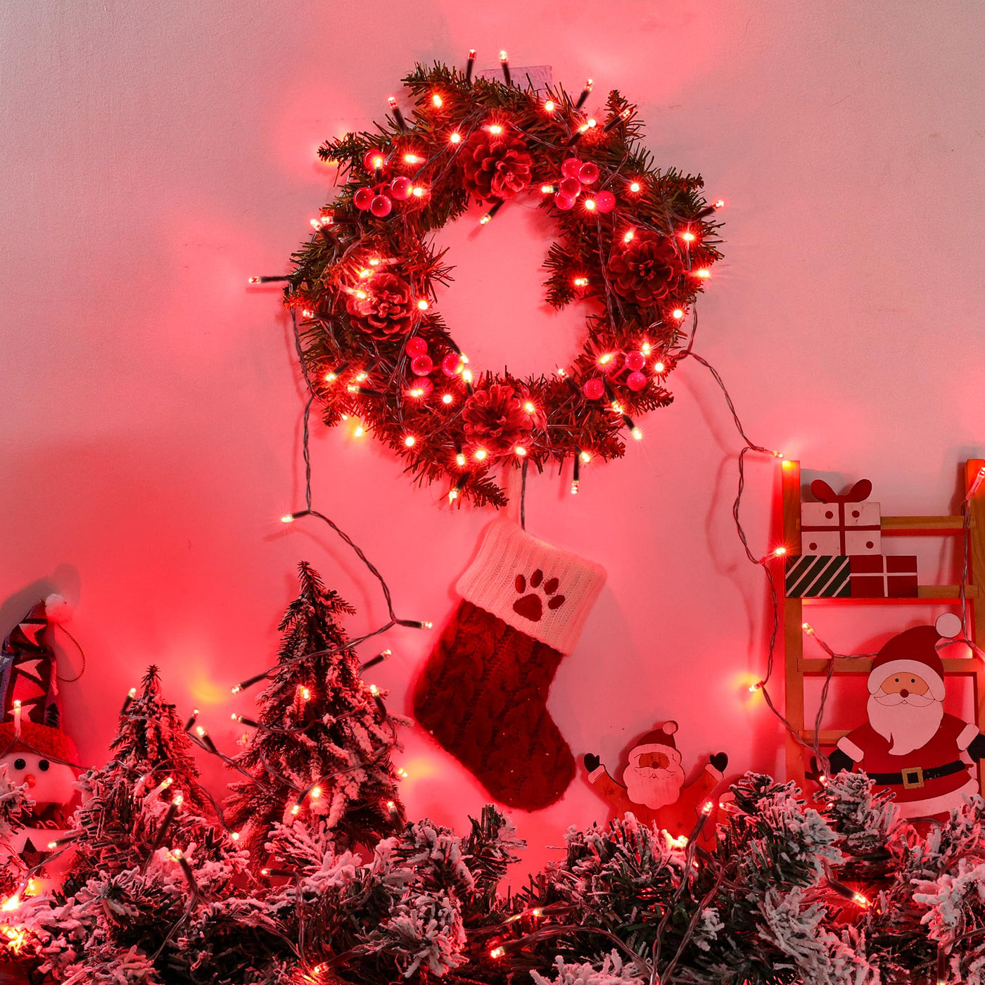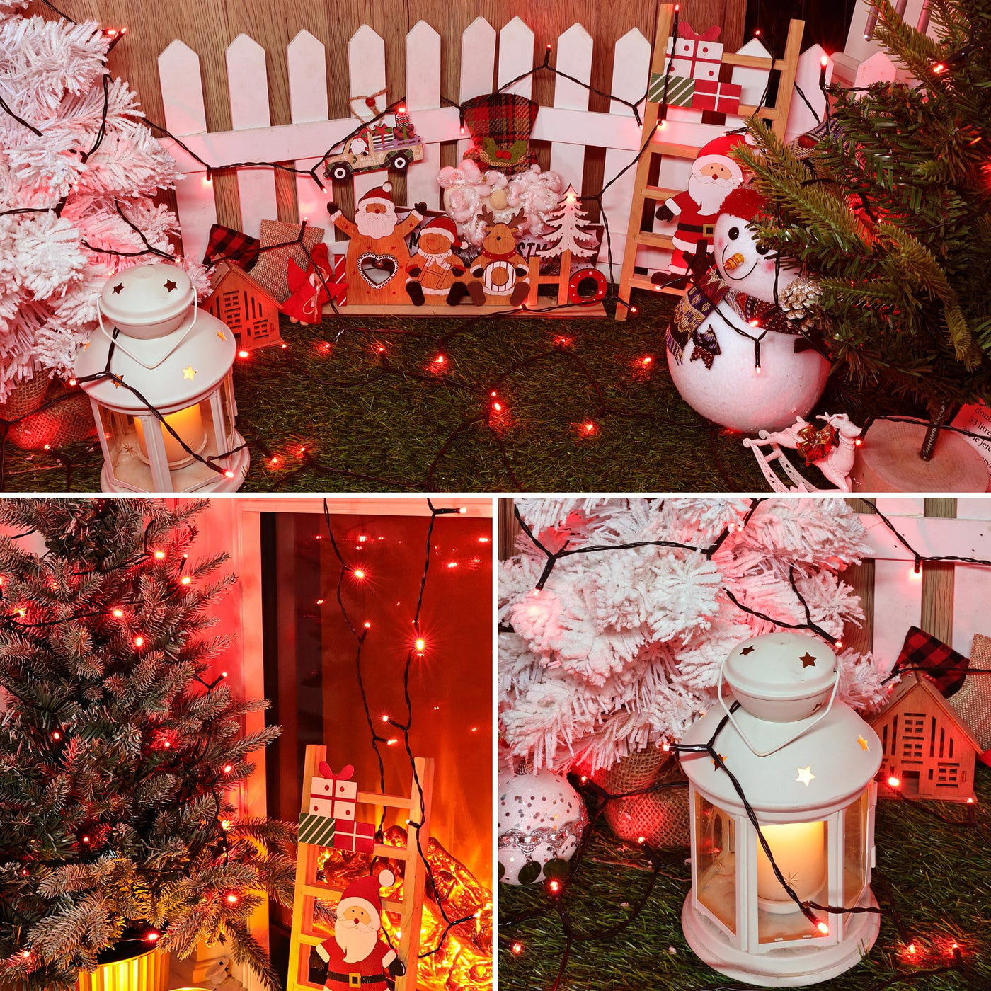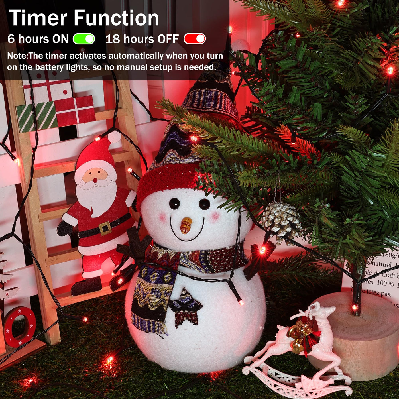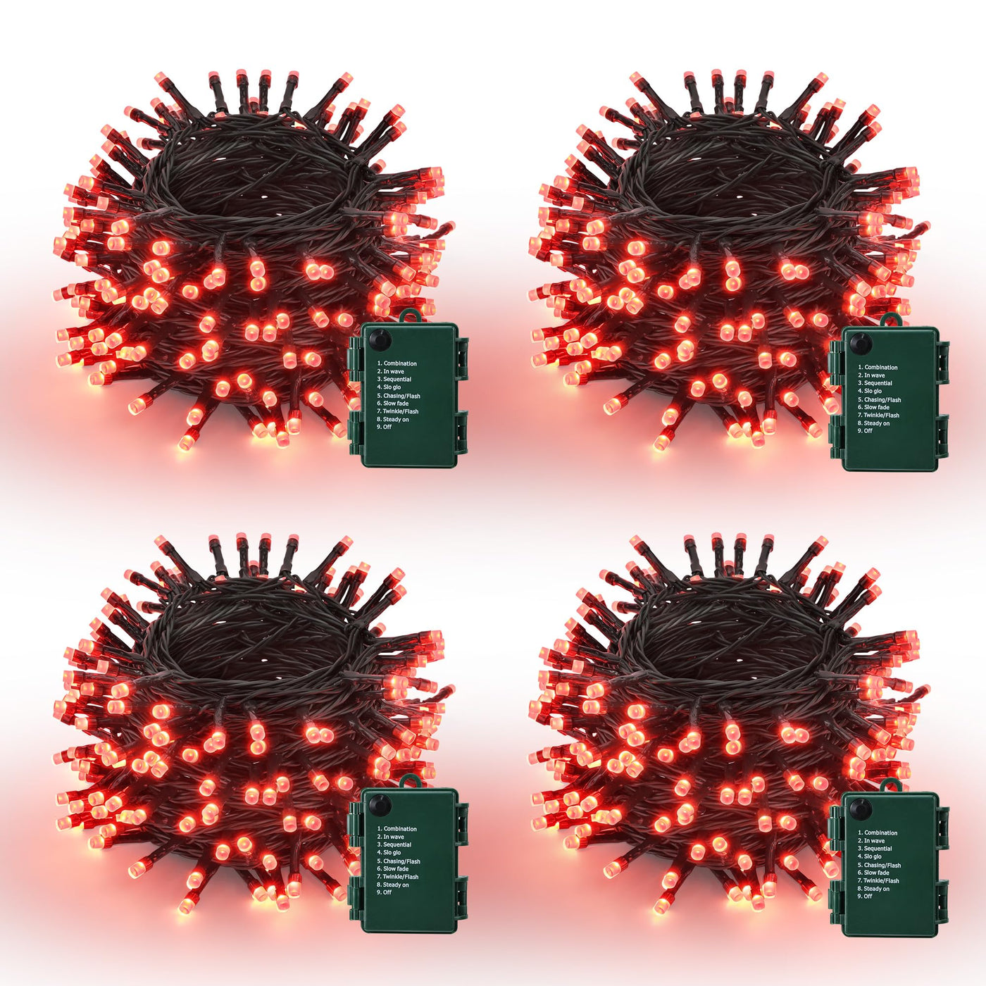 Lomotech Battery Operated Christmas Lights - 4 Pack Total 66Ft 200Leds String Lights 8 Modes Waterproof With Timer For Home Garden Party Holiday Tree Decoration (Green Wire Red)