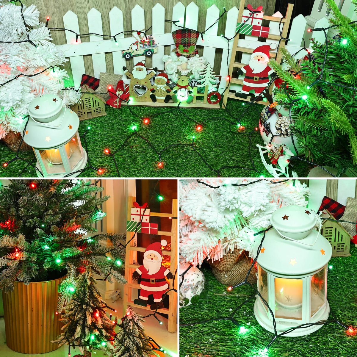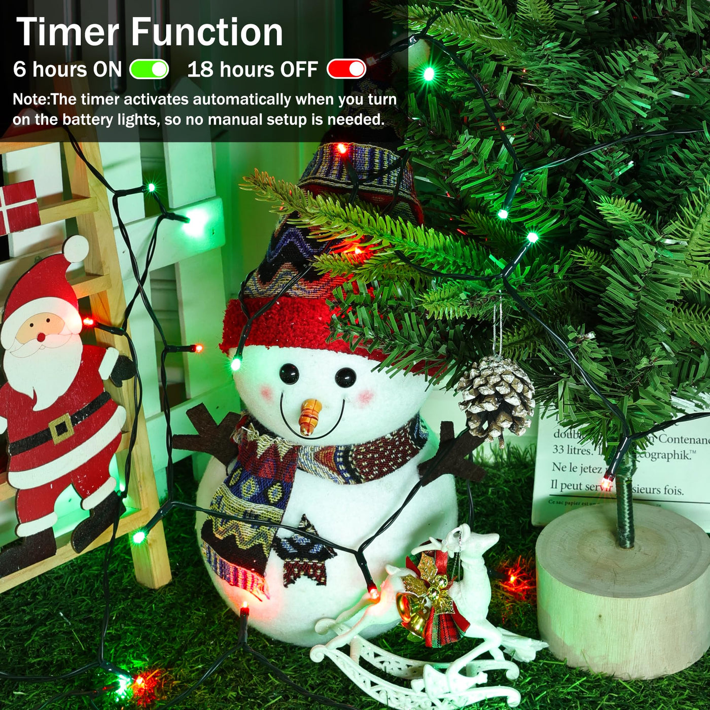 Lomotech Battery Operated Christmas Lights - 4 Pack Total 66Ft 200Leds String Lights 8 Modes Waterproof With Timer For Home Garden Party Holiday Tree Decoration (Green Wire Red & Green)