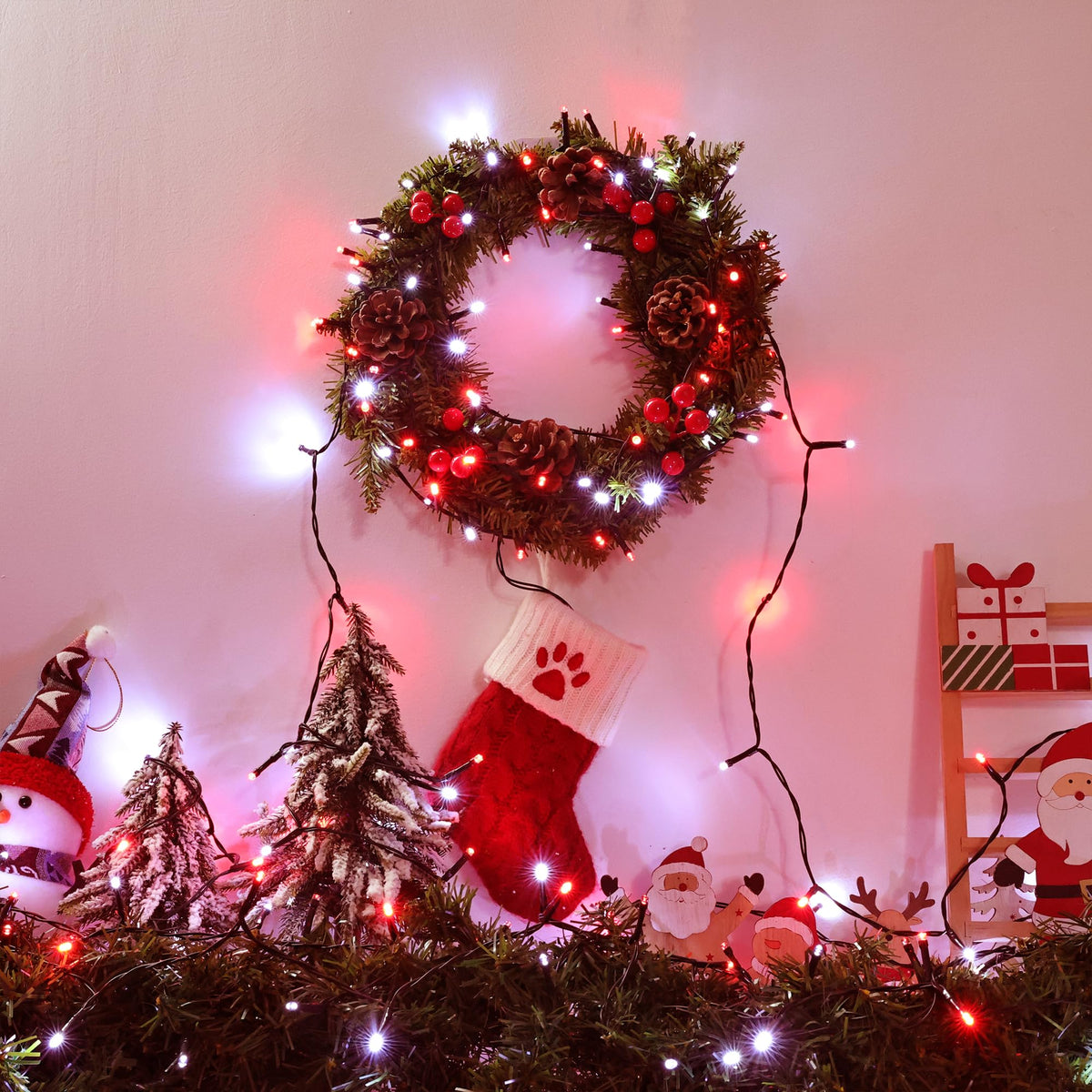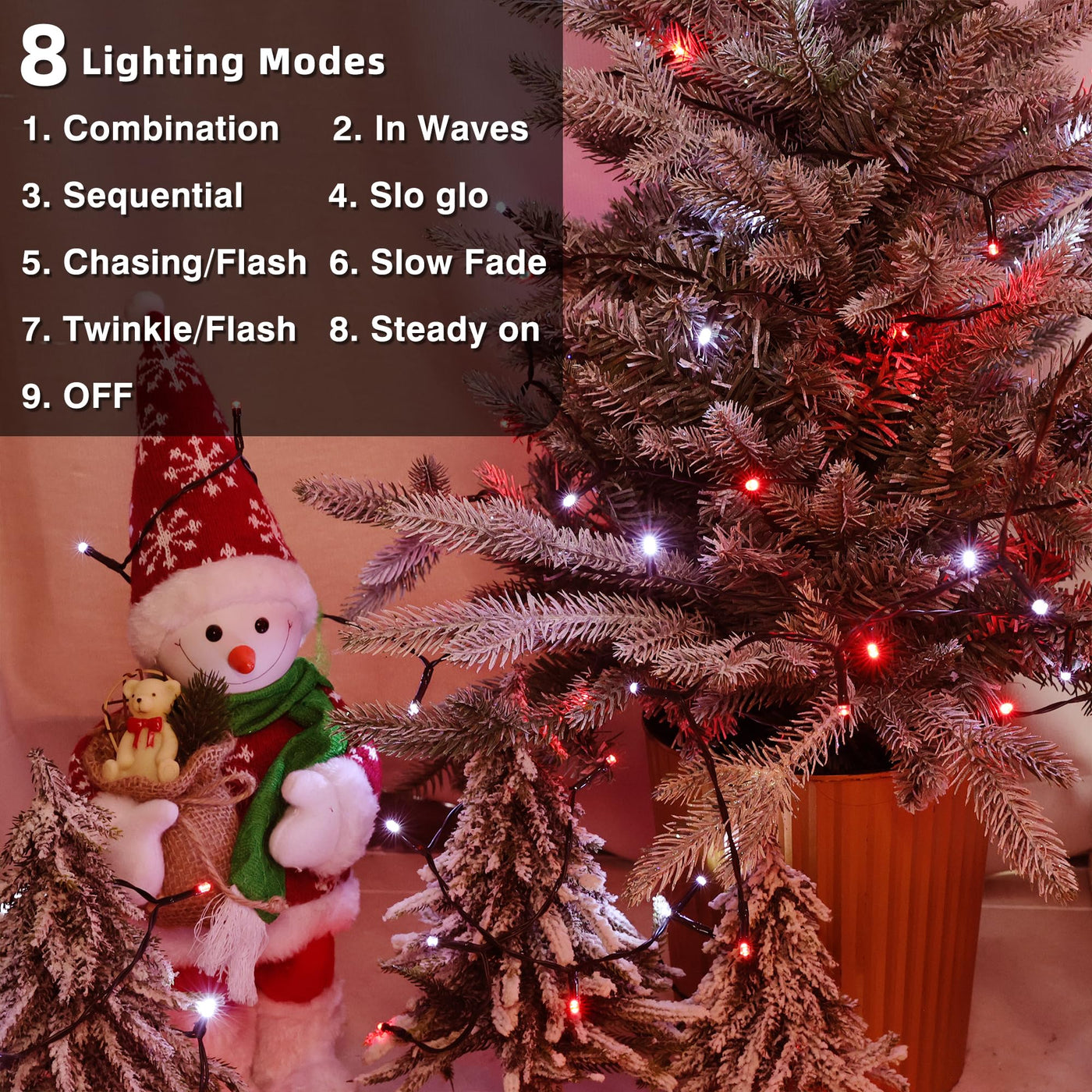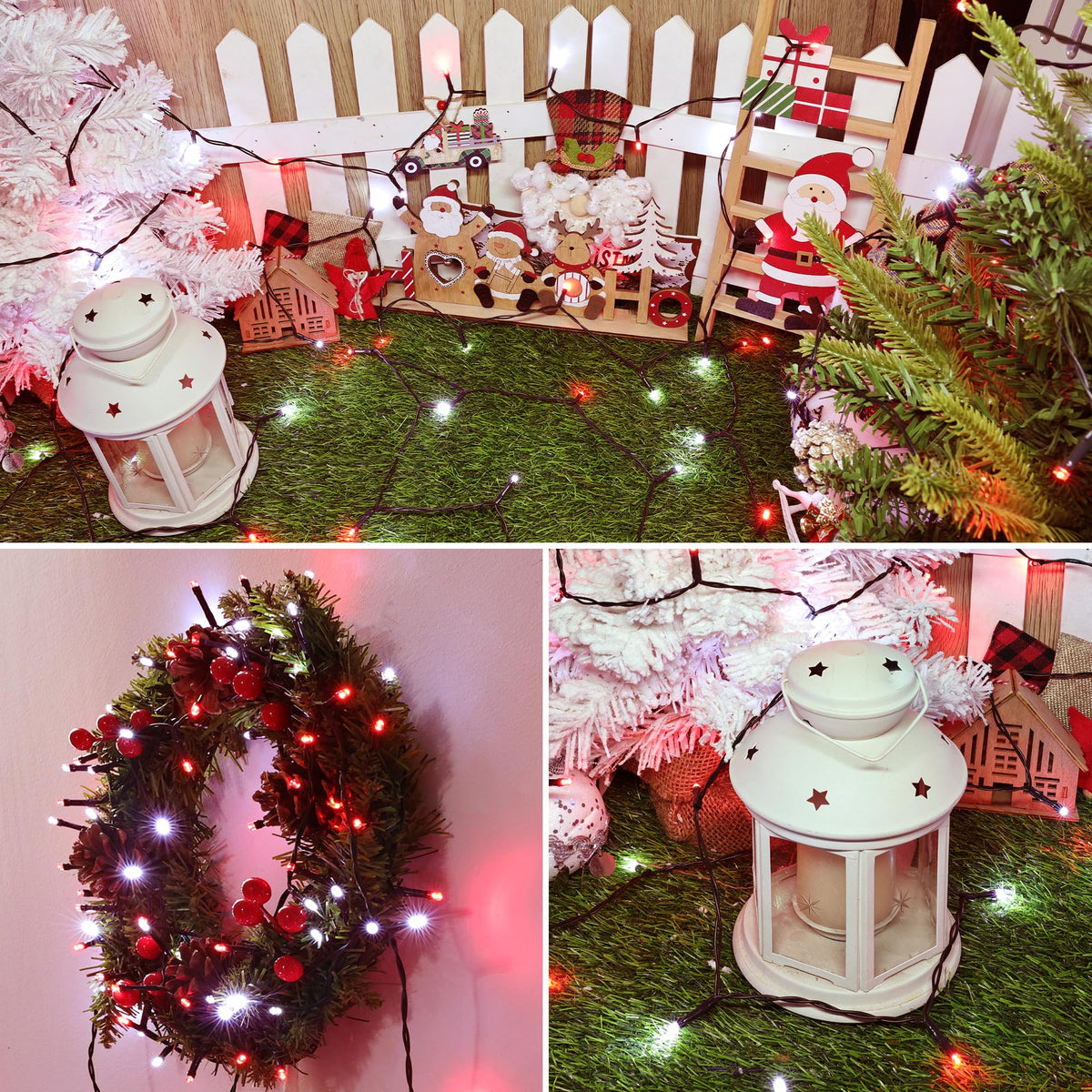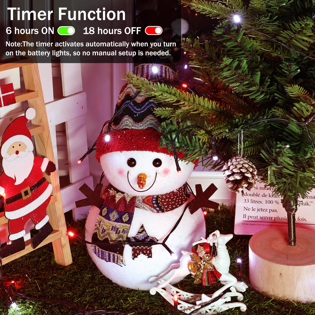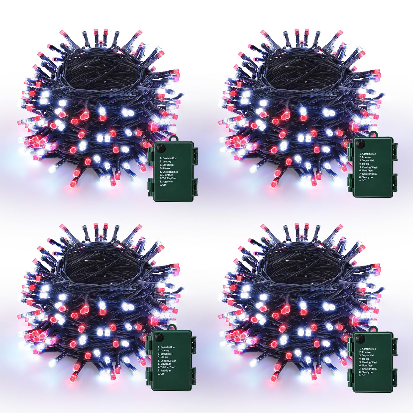 Lomotech Battery Operated Christmas Lights - 4 Pack Total 66Ft 200Leds String Lights 8 Modes Waterproof With Timer For Home Garden Party Holiday Tree Decoration (Green Wire Red & White)