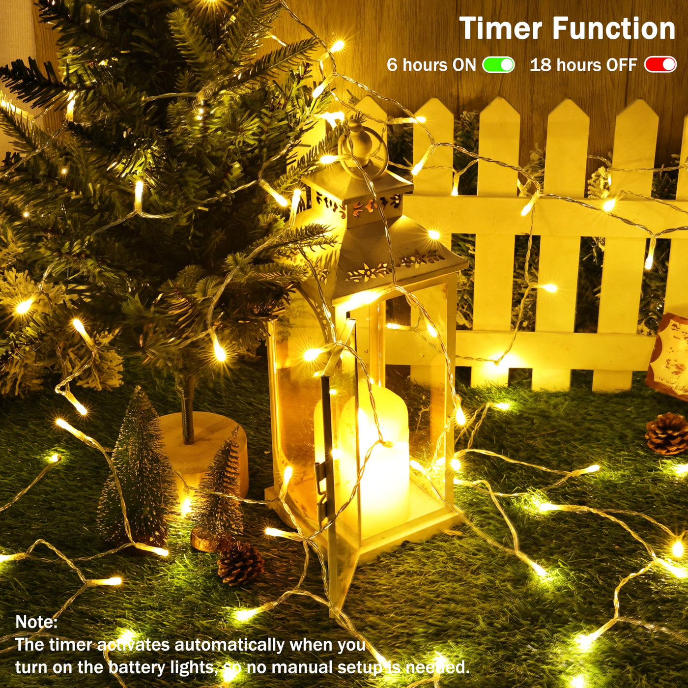 Lomotech Battery Operated Christmas Lights 66ft 200 LEDs Waterproof 8 Modes Clear Wire Warm White - Model LED08230200
