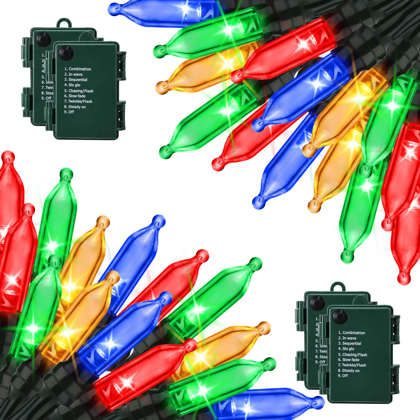 Q: What modes do these Christmas lights offer?A: The lights feature eight different modes, allowing users to choose from various lighting effects to suit their festive atmosphere.