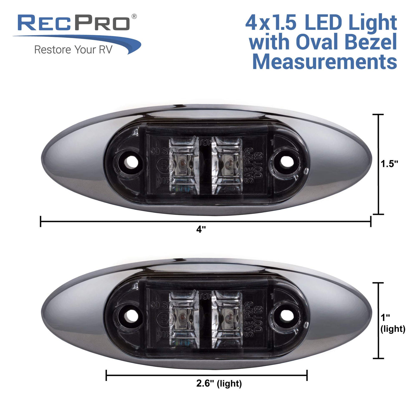 12 NEW 4"x1.5" AMBER LED SURFACE MOUNT CLEARANCE MARKER LIGHT WITH CHROME BEZEL Functions as clearance, side marker or identification light. Polycarbonate lens is sonic welded to the housing. 2 LED diodes -=-You will need your own screws they are not provided-=-