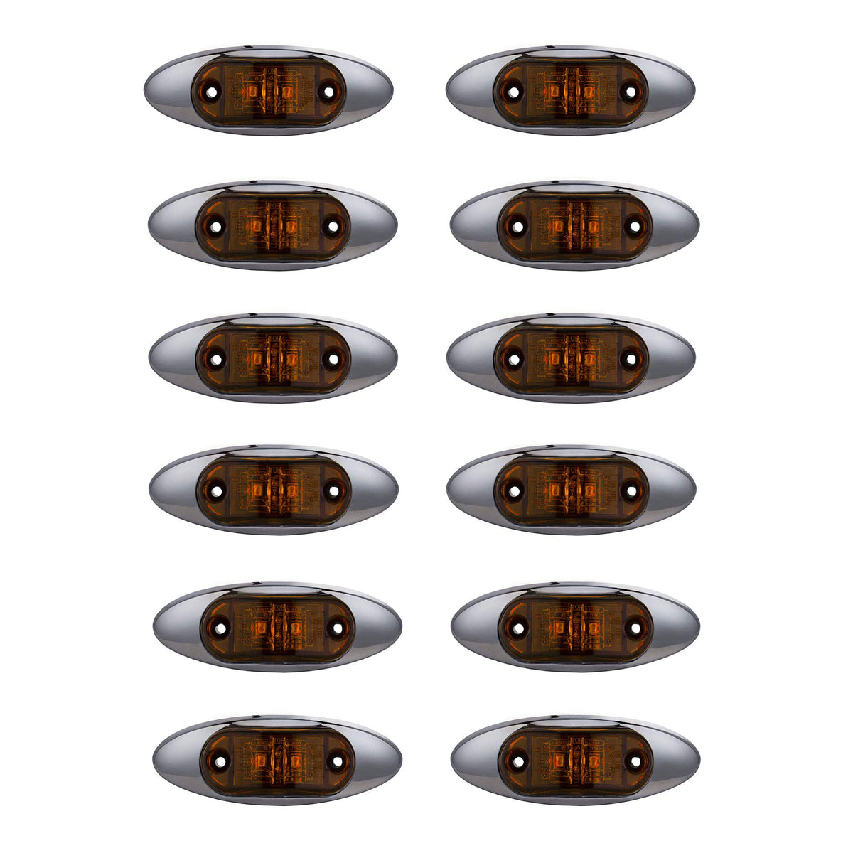 Long Haul 12 4"X1.5" Amber Led Surface Mount Clearance Marker Light With Chrome Bezel Oval Oblong -Good For Trucks Trailers Etc El-112692A