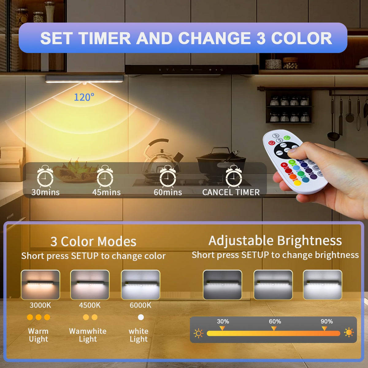 Long-Stars Under Cabinet Lights, Wireless Rechargeable Led Rgb Under Counter Lights Bar 3 Packs 48 Led 15 Color Temps Dimmable With Remote Shelf Kitchen Closet Bedroom Lights