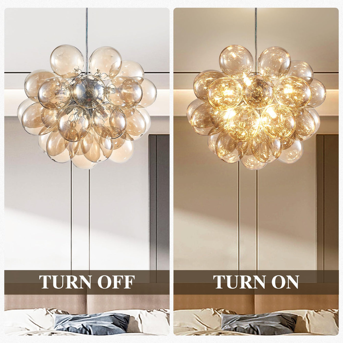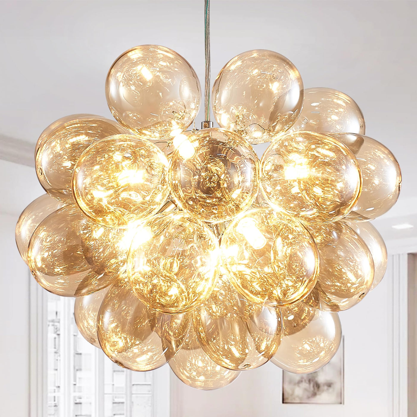 Longree Champagne Bubble Ball Chandelier, Dia 20 Inch Blown Glass Small Ballon Glass Pendant Light Fixture For Bedroom Study Bat