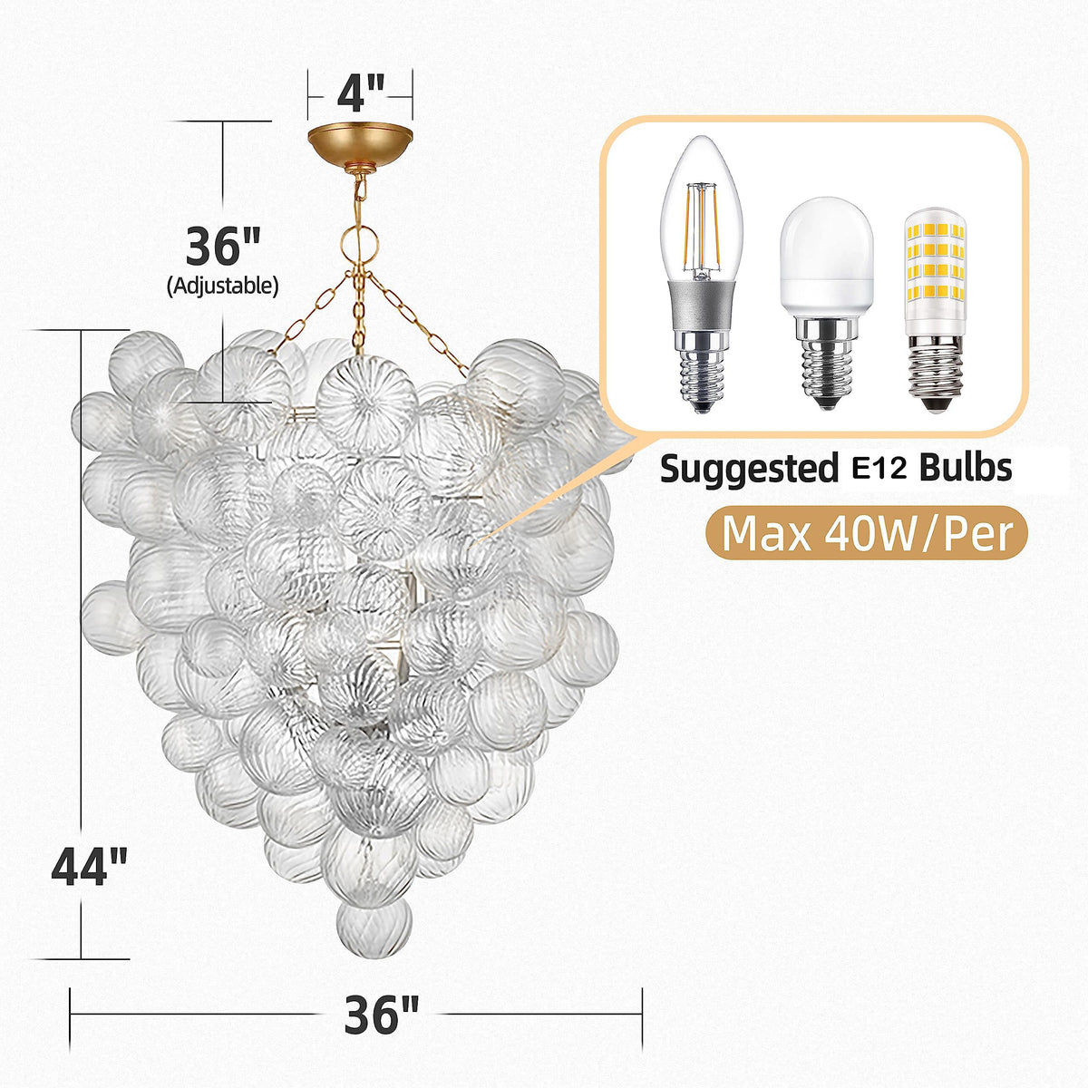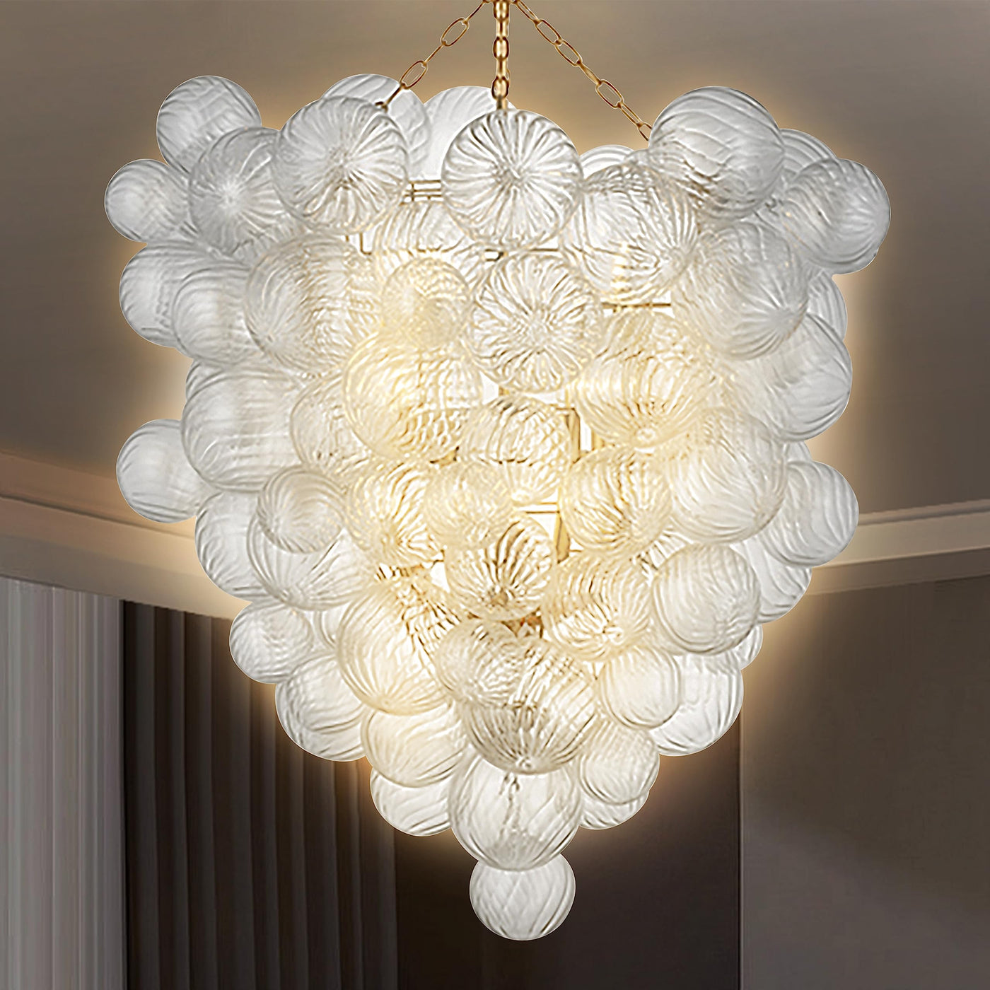 Longree Mid Century Bubble Ball Swirled Glass Chandelier, 2-Layer Cages Gild Gold And Clear Blown Glass Large Pendant Light Fixt