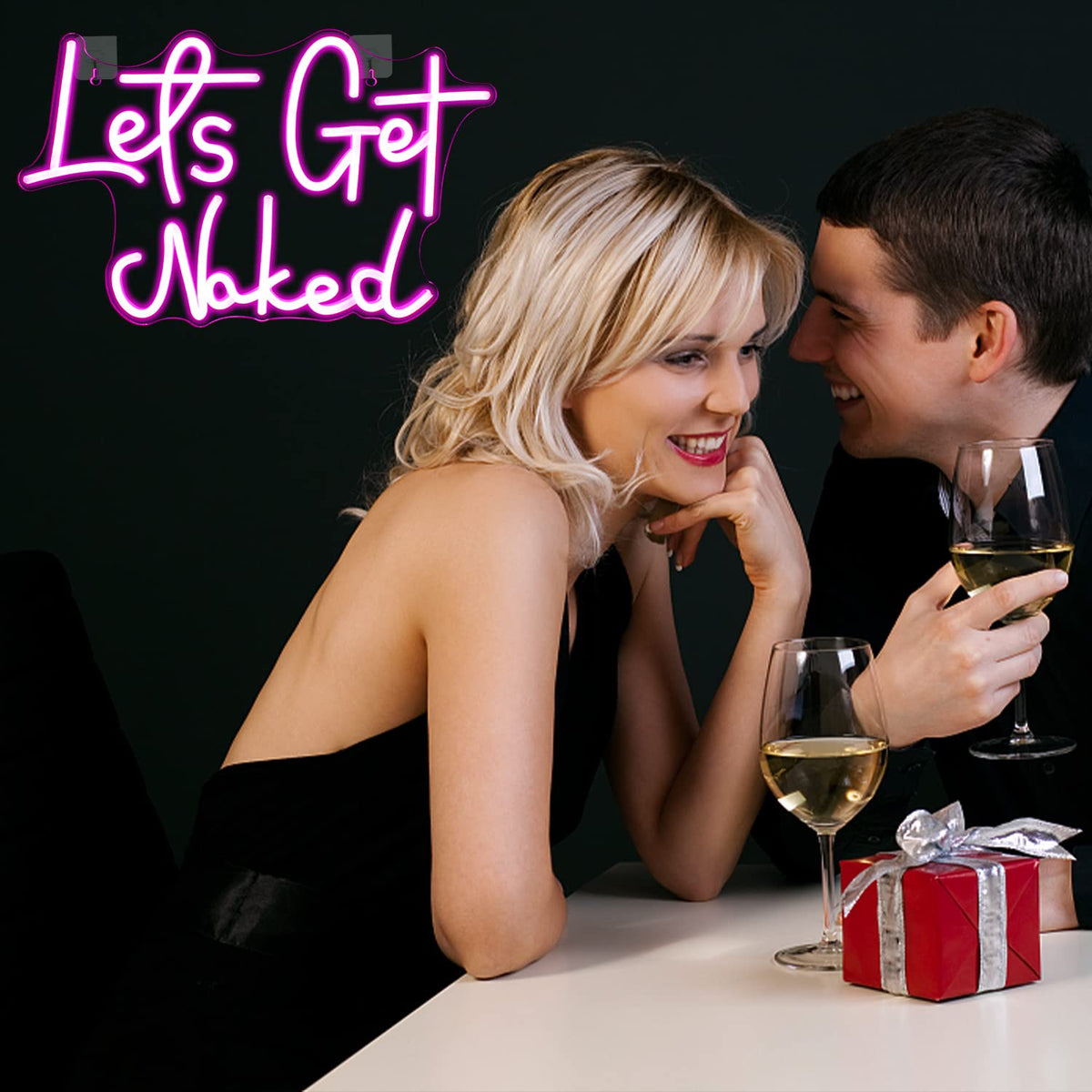 Looklight Let'S Get Naked Neon Sign - Led Wall Decor For Bathroom, Game Room, Man Cave