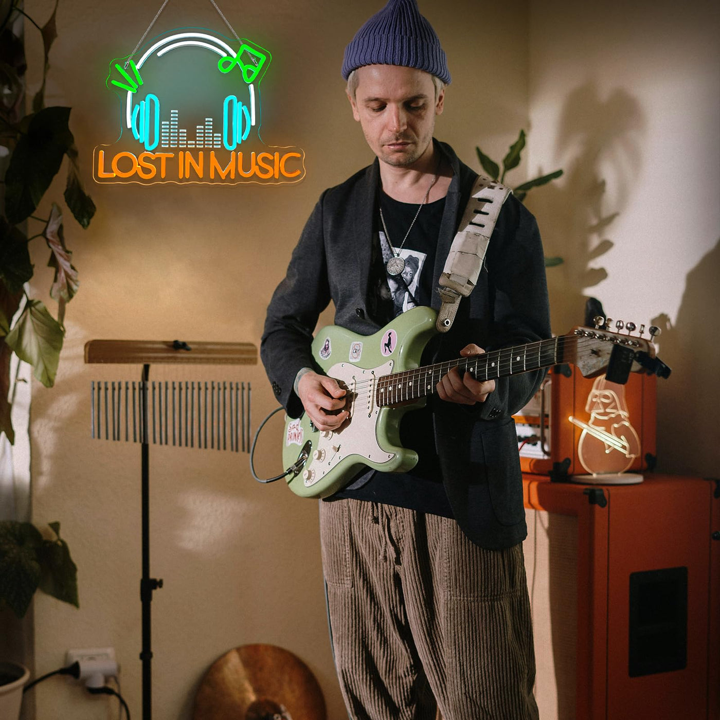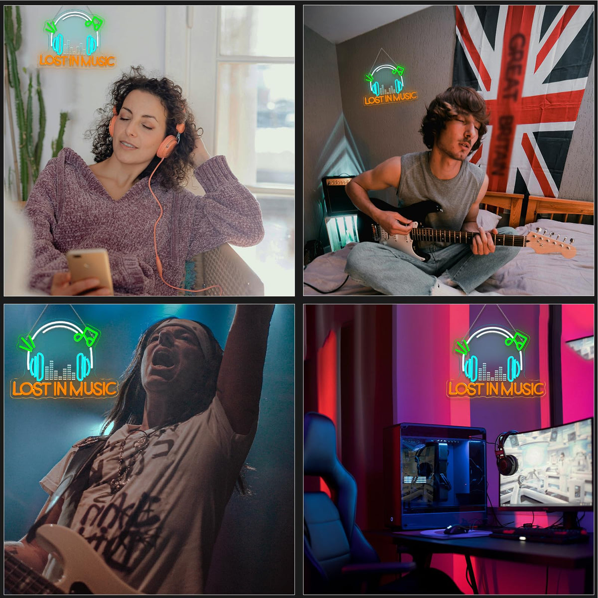 The Looklight Lost In Music Neon Sign Is A Perfect Choice For Music Studio Decor And Neon Signs For Wall Decor. Measuring 16.54 X 12.2 Inches This Bright Music Neon Sign Adds A Creative Glow To Any Music Room Studio Or Bar. Designed With Headphones And Notes It Brings Rhythm And Energy To Your Space. Easy To Install With Usb Power This Neon Sign Enhances Any Music Studio Decor With Style And Long-Lasting Brightness.