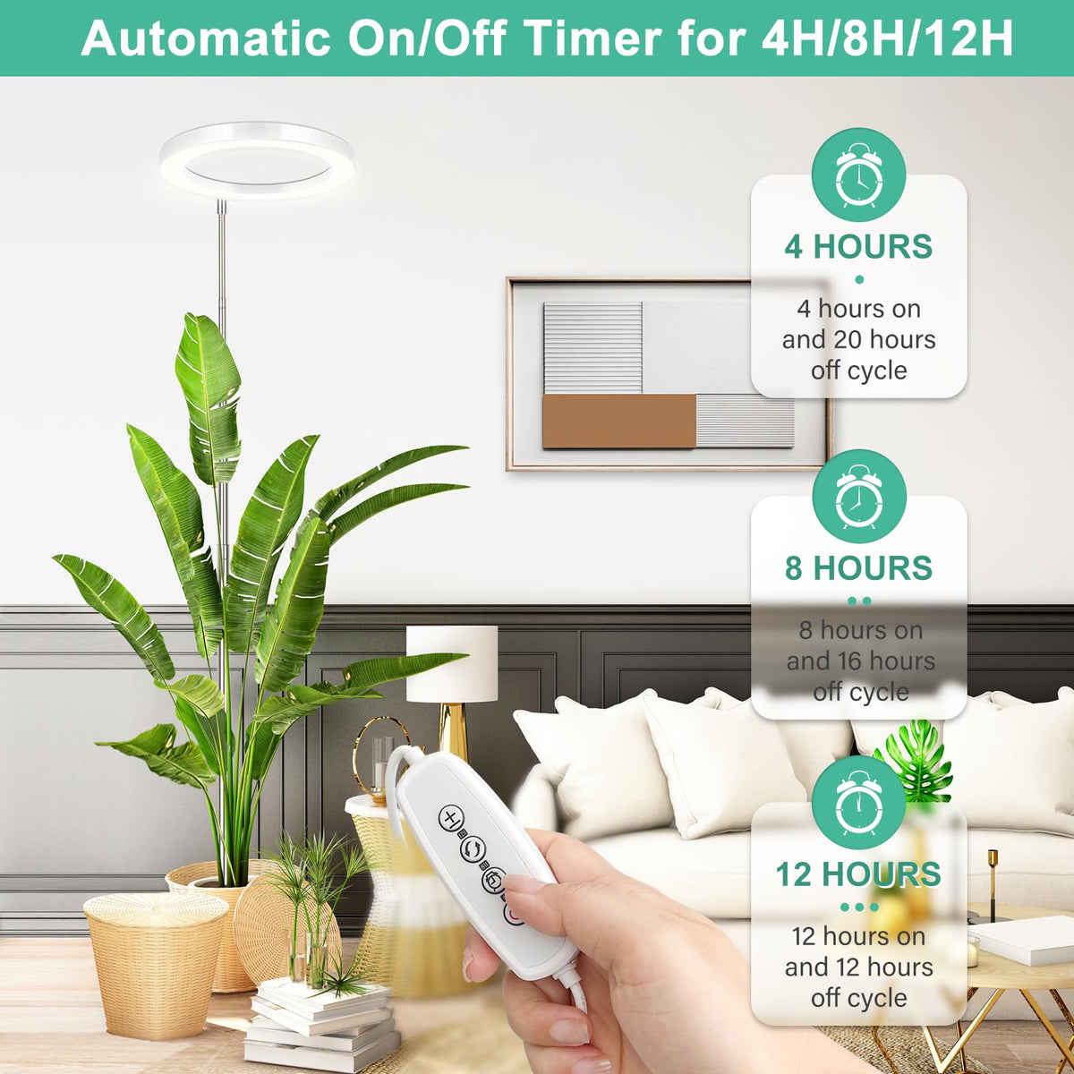 Q: Can I set a timer for the grow light, and how does it work?A: Yes, the LORDEM grow light comes with an auto on/off timer that allows you to choose from 4, 8, or 12-hour cycles. This feature ensures that your plants receive consistent lighting without the need for manual operation, making plant care easier.