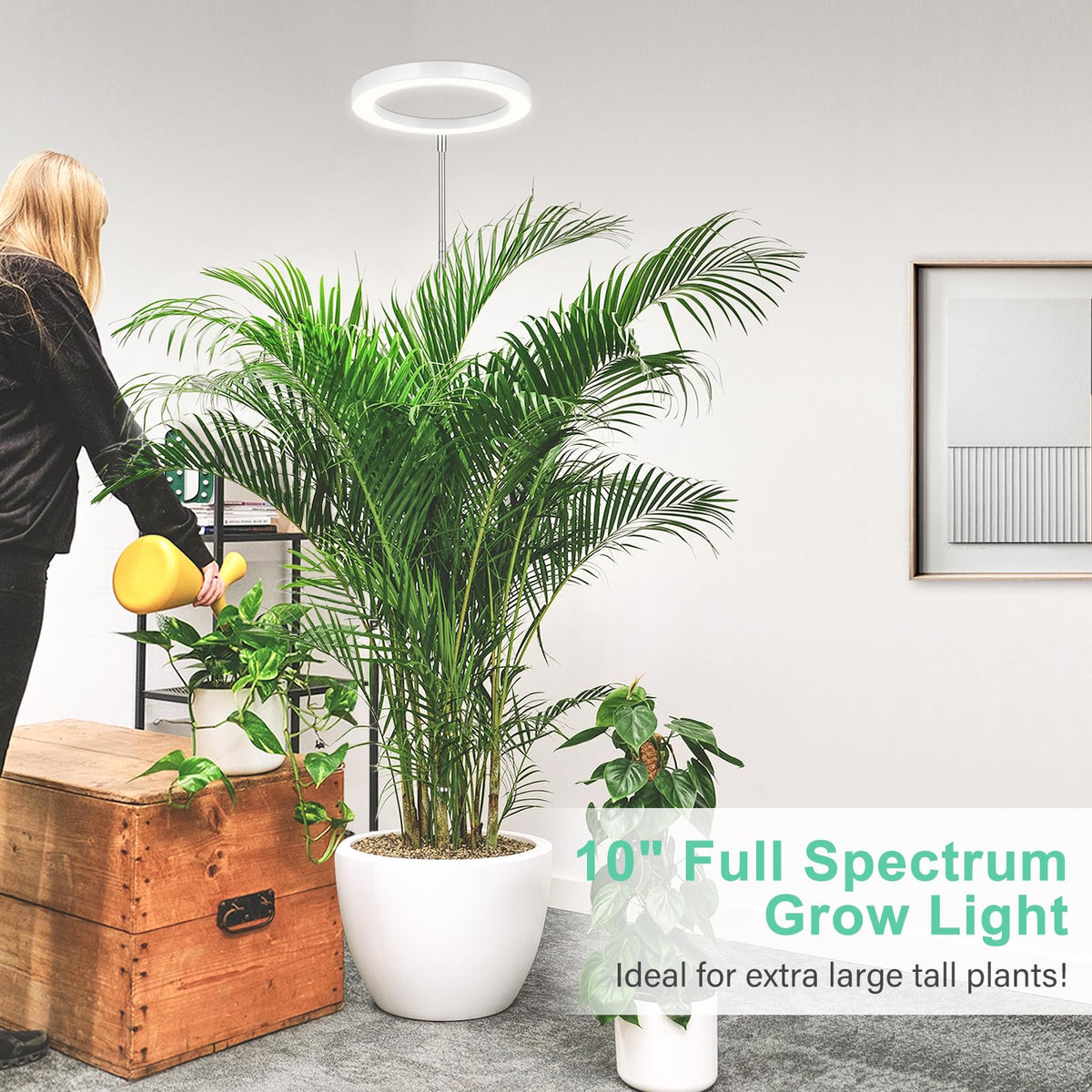 Q: What types of plants are suitable for the LORDEM 10" Grow Light?A: The LORDEM 10" Grow Light is ideal for various indoor plants, especially larger and tall plants, due to its height-adjustable design and full spectrum light that supports plants at all growth stages from seedlings to maturity.