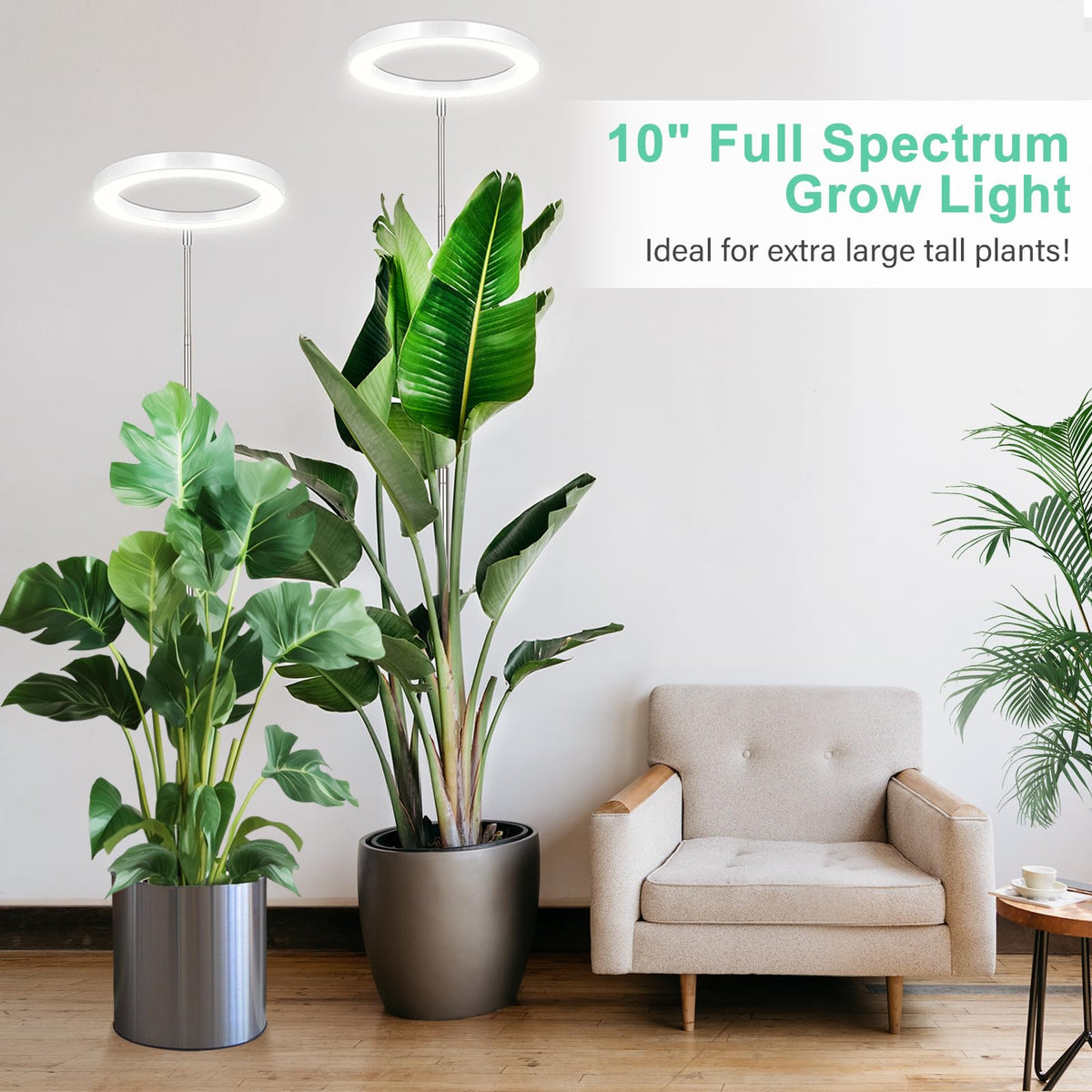 Lordem 10" Grow Light For Indoor Plants, Full Spectrum Plant Lamp With160 Leds, 4H/8H/12H Timer, 10 Dimmable Levels, 3 Spectrum Modes, Height Adjustable 61", Ideal For Large Tall Plants, Pack Of 2