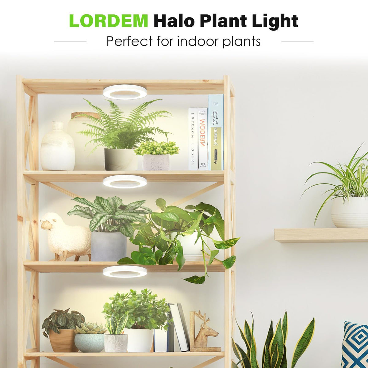 Lordem 6.3” Ceiling Grow Lamp For Indoor Plants, 216 Leds Full Spectrum Halo Plant Light, Under Cabinet Grow Lights With 4/8/12H Auto Timer, 3 Switch Modes, 4 Dimmable Brightness Levels, Tri Head