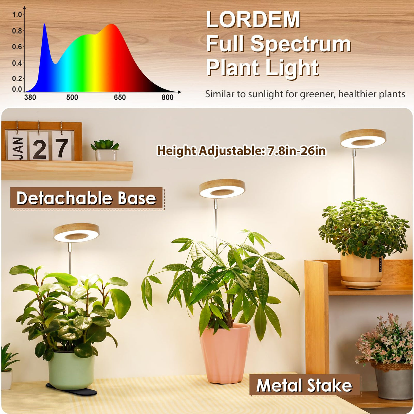 Q: What types of plants are suitable for the LORDEM grow light?A: The LORDEM Bamboo Base Desktop Grow Light is suitable for a wide variety of indoor plants, including herbs, succulents, and flowering plants. Its adjustable brightness and full spectrum lighting mimic natural sunlight, making it ideal for almost any type of indoor gardening.