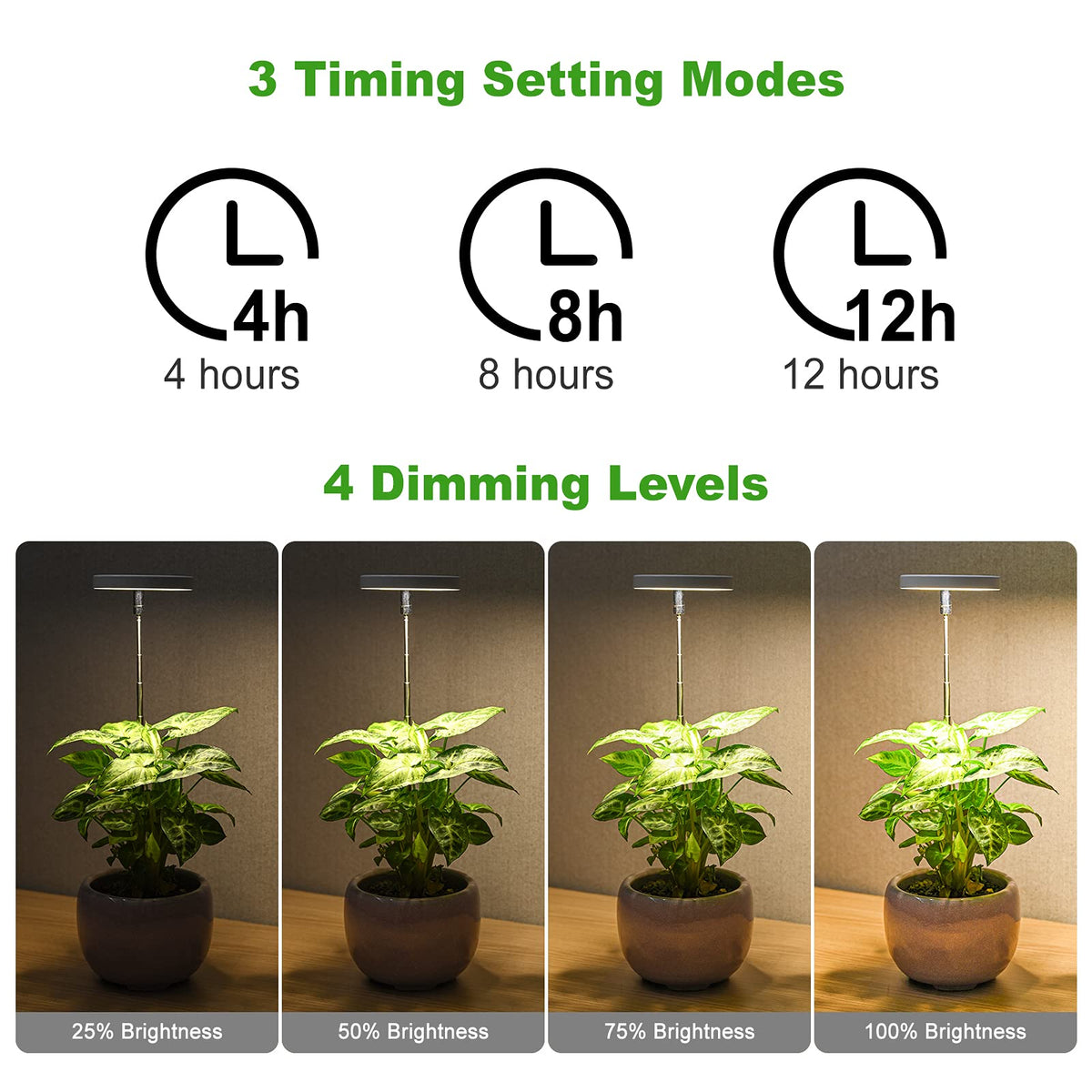 Lordem Grow Light, Full Spectrum Led Plant Light For Indoor Plants, Height Adjustable Growing Lamp With Auto On/Off Timer 4/8/12H, 4 Dimmable Brightness, Ideal For Small Plants, 2 Packs